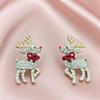 Christmas Reindeer Bow Tie Earrings: Drip Oil & Inlaid Diamonds with Movable Limbs