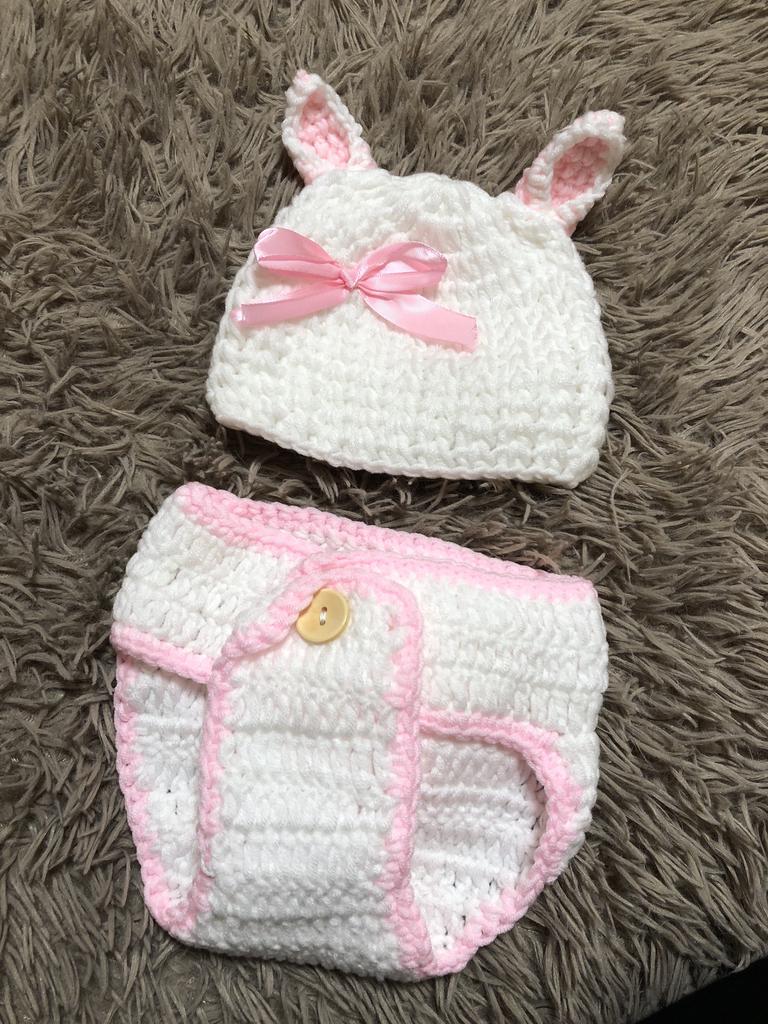 Cream Rabbit Bunny Hats with Shorts Sets Suits Handmade Outfits Newborn Infant Baby Boys Pri