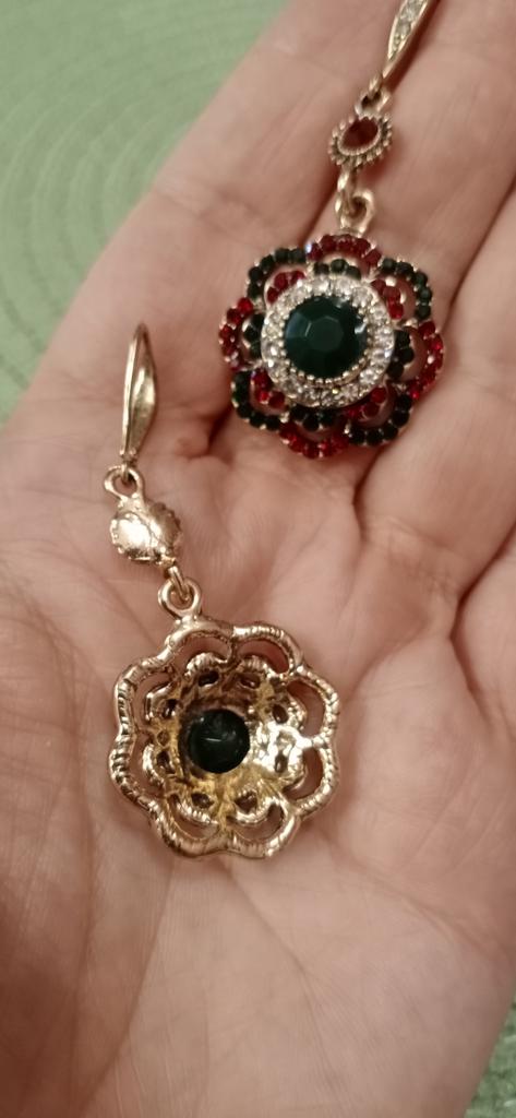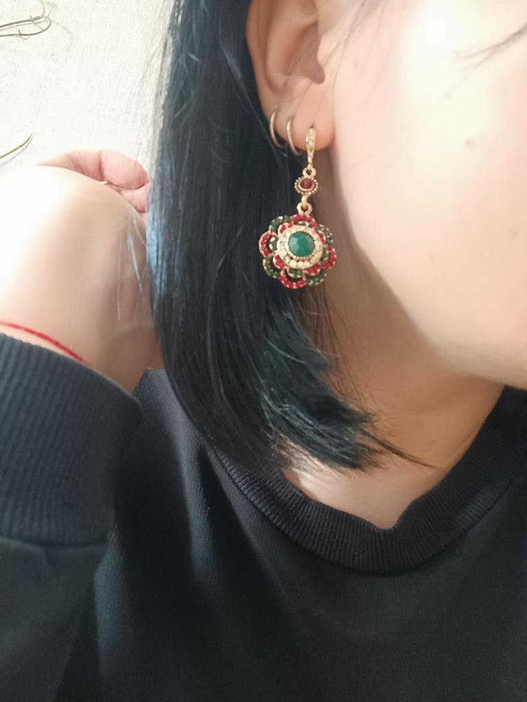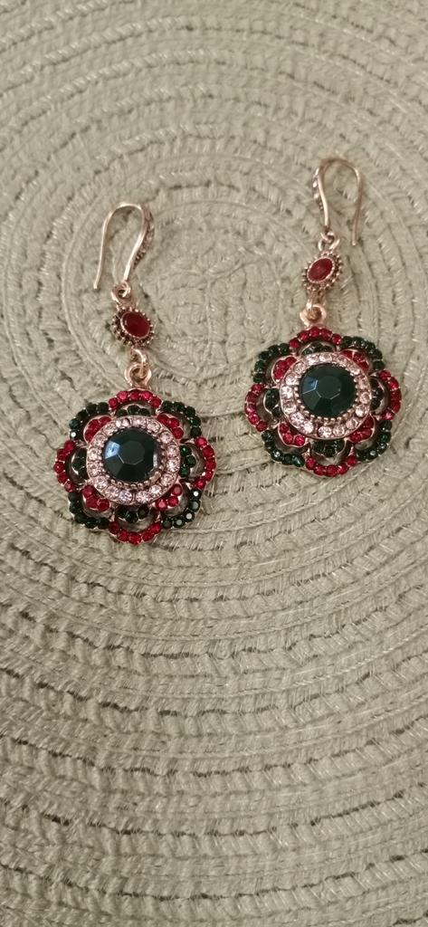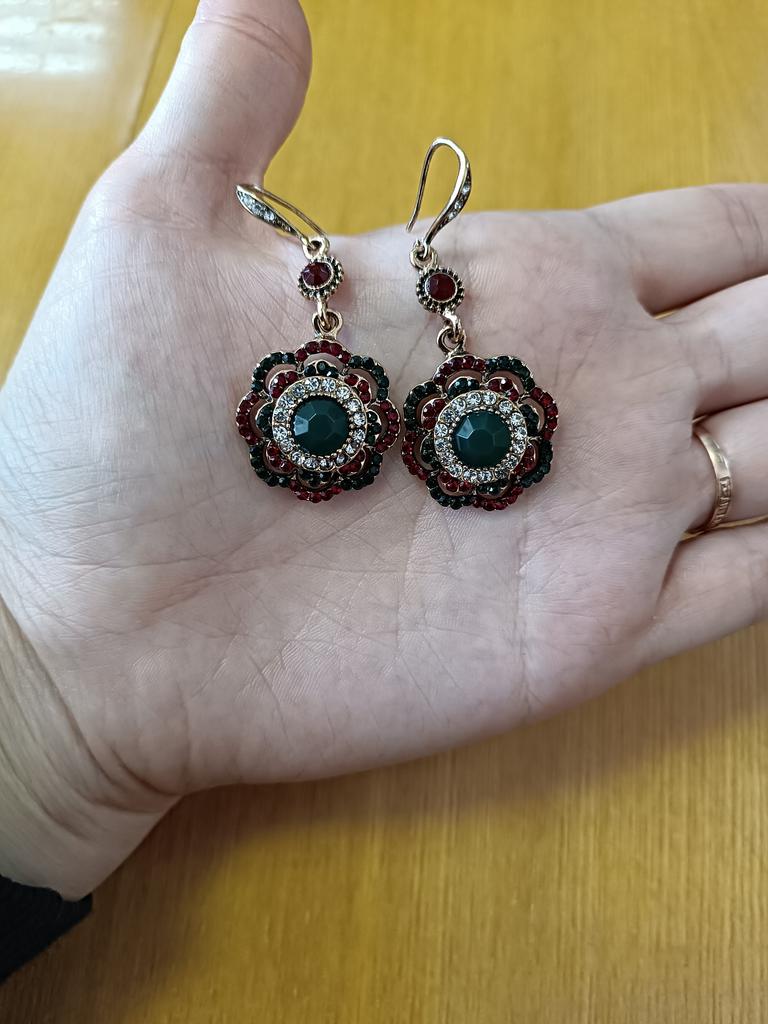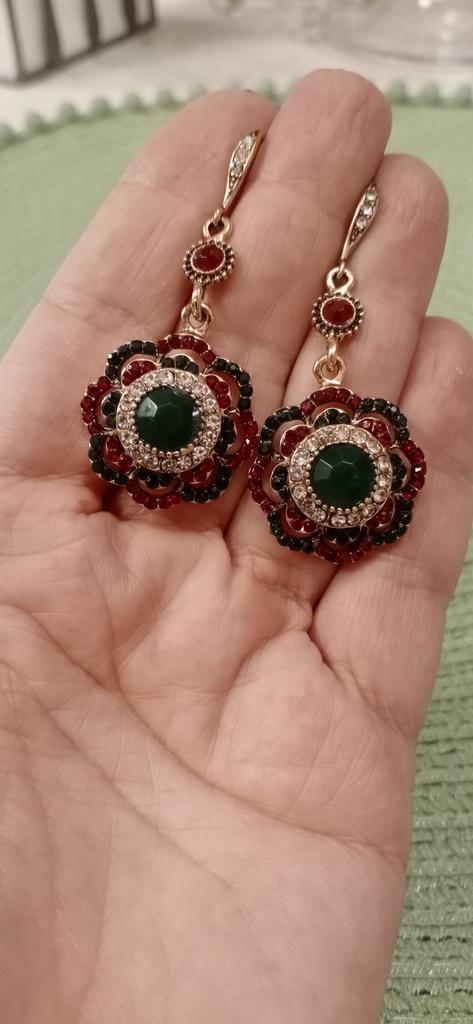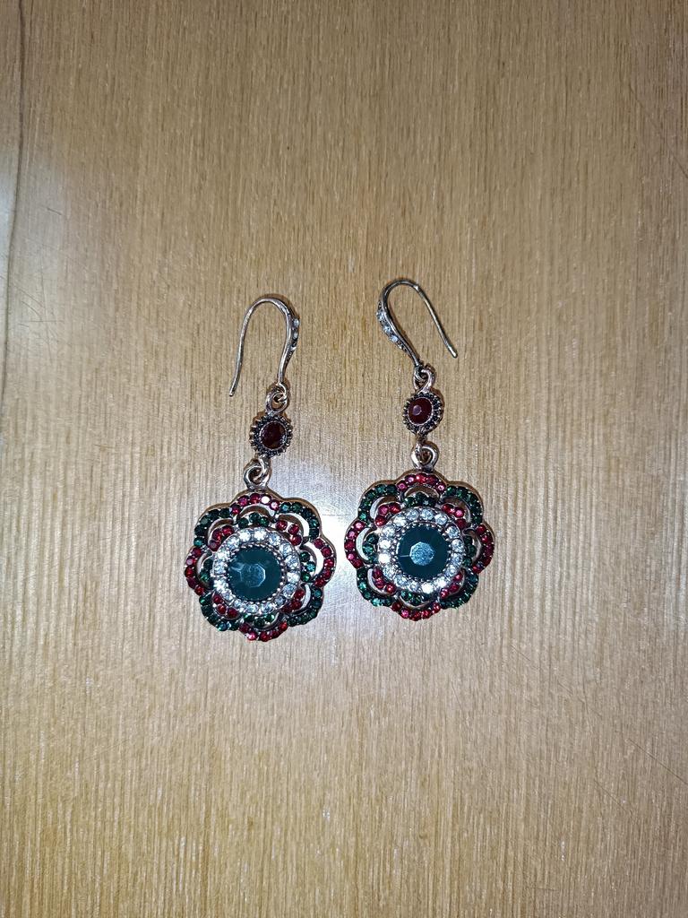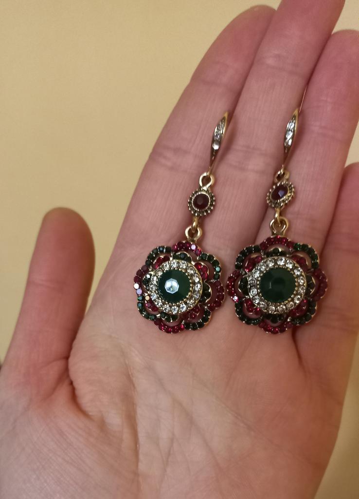 Very nice antique style earrings and the colored stones shine beautifully.