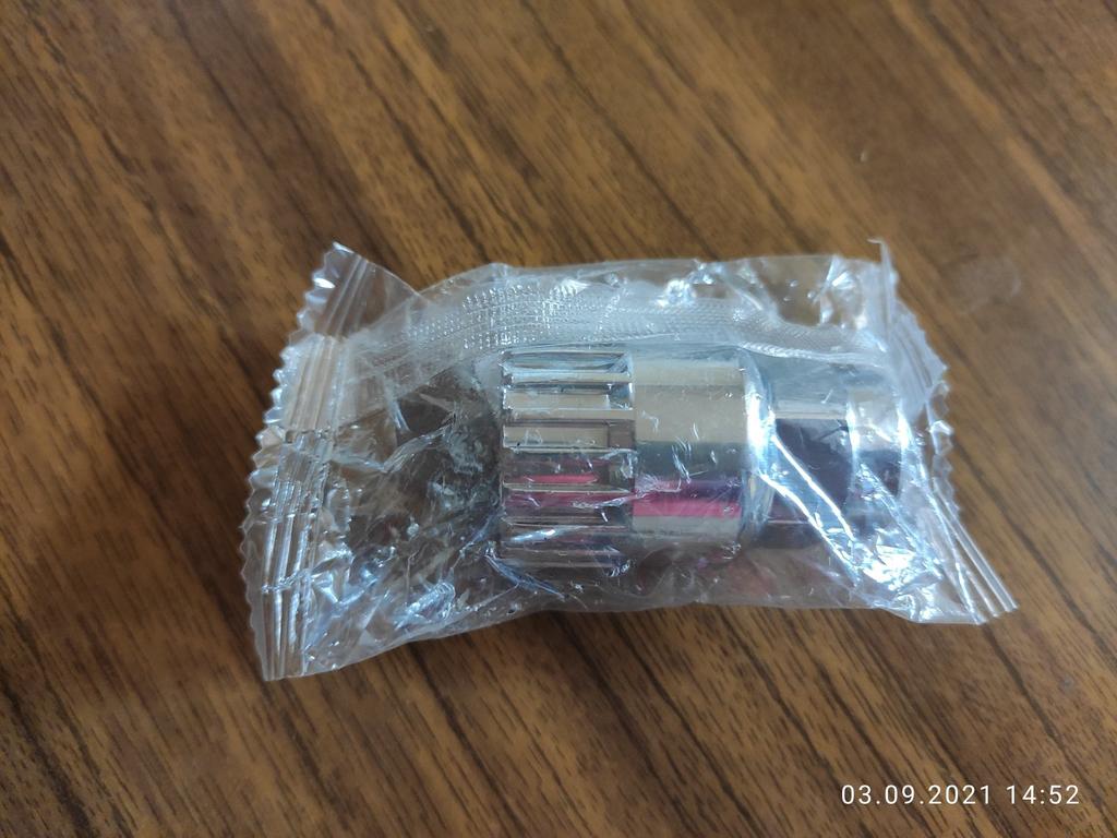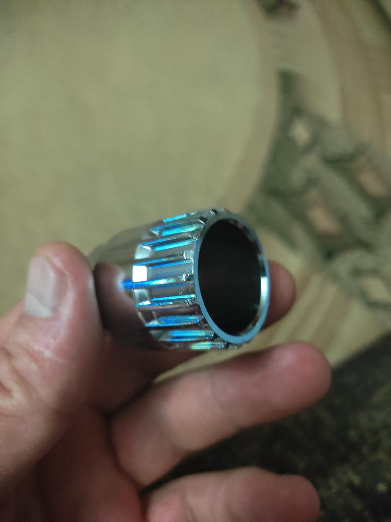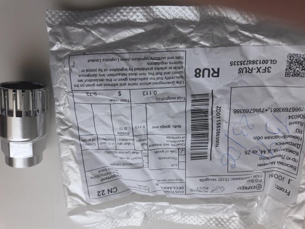 Made from metal. By weight 109 grams. Haven't tried it in the case yet. Looks good quality. Spline diameter 30 mm Update: Did the job. The quality matches.
