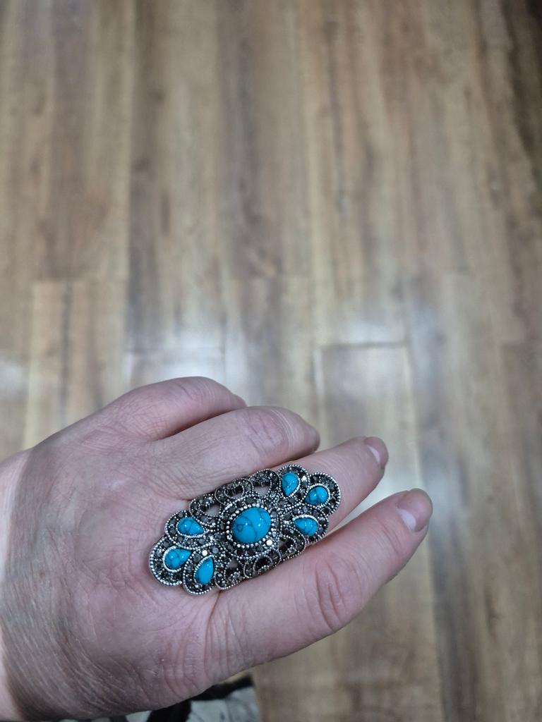 Very large and massive, the stone looks richly like a real one, a beautiful ring, as if made of silver for half a hand