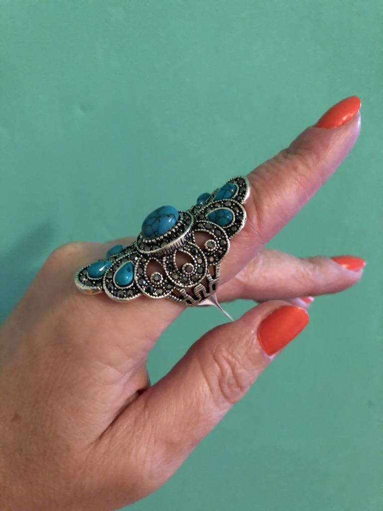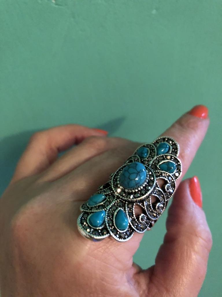 Very beautiful! I recommend it to anyone who likes big rings.. If you wear size 9, it is better to order 10.