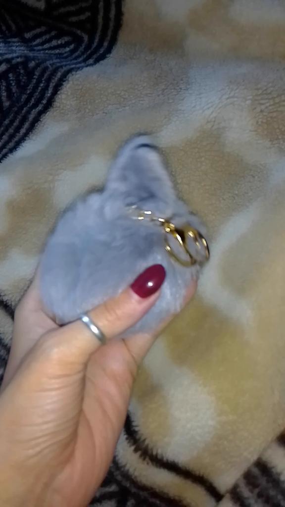 Cute Fluffy Rabbit Ear Fur Ball Key Chain Rings Pendant Lovely Pompom Artificial Rabbit Fur Keychain