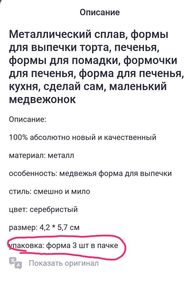 I received the order... The bear is pretty, but very small in size. It is infuriating that it is declared - 3 pcs., and only 1 pcs. in the order!!! 👎