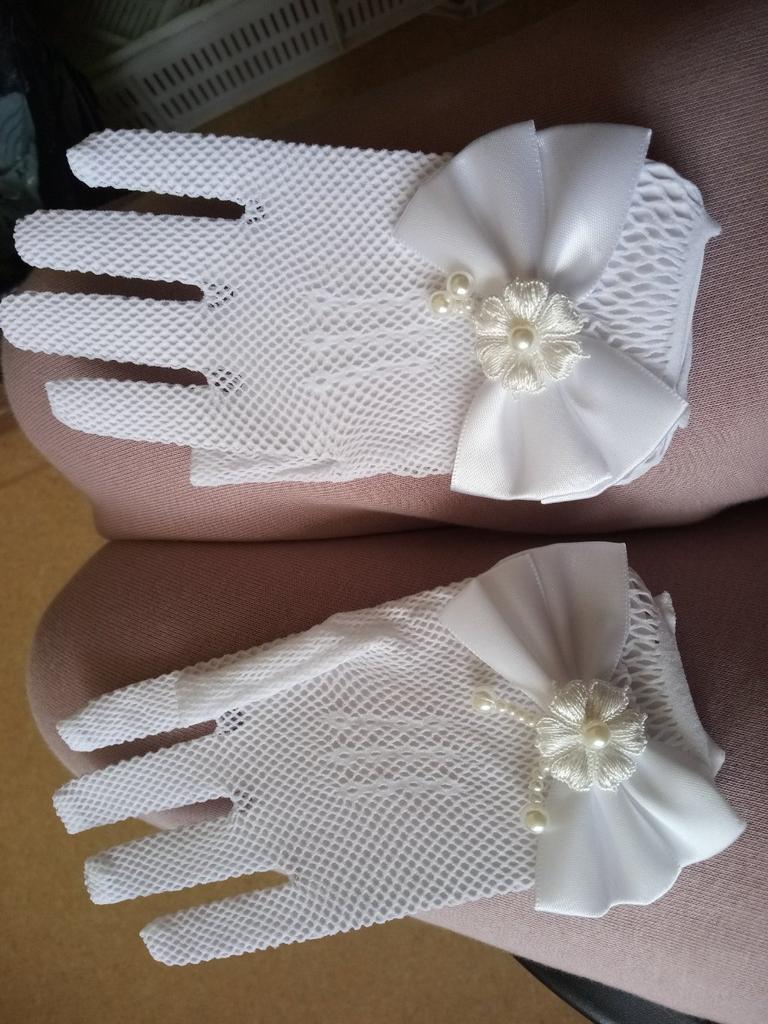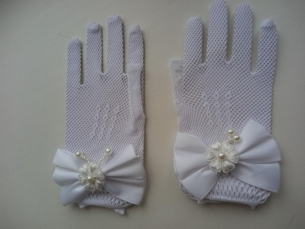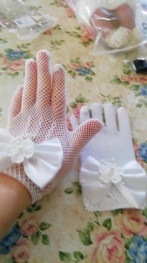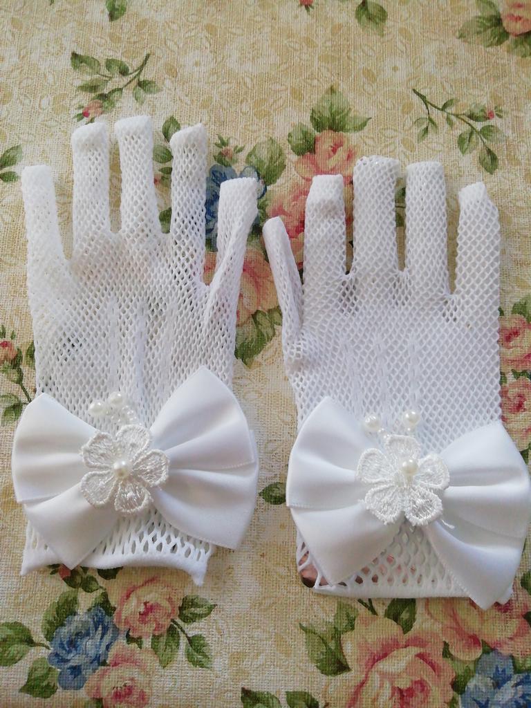 Children's Bow Fishnet Dress Gloves Wedding Flower Girl White Gloves