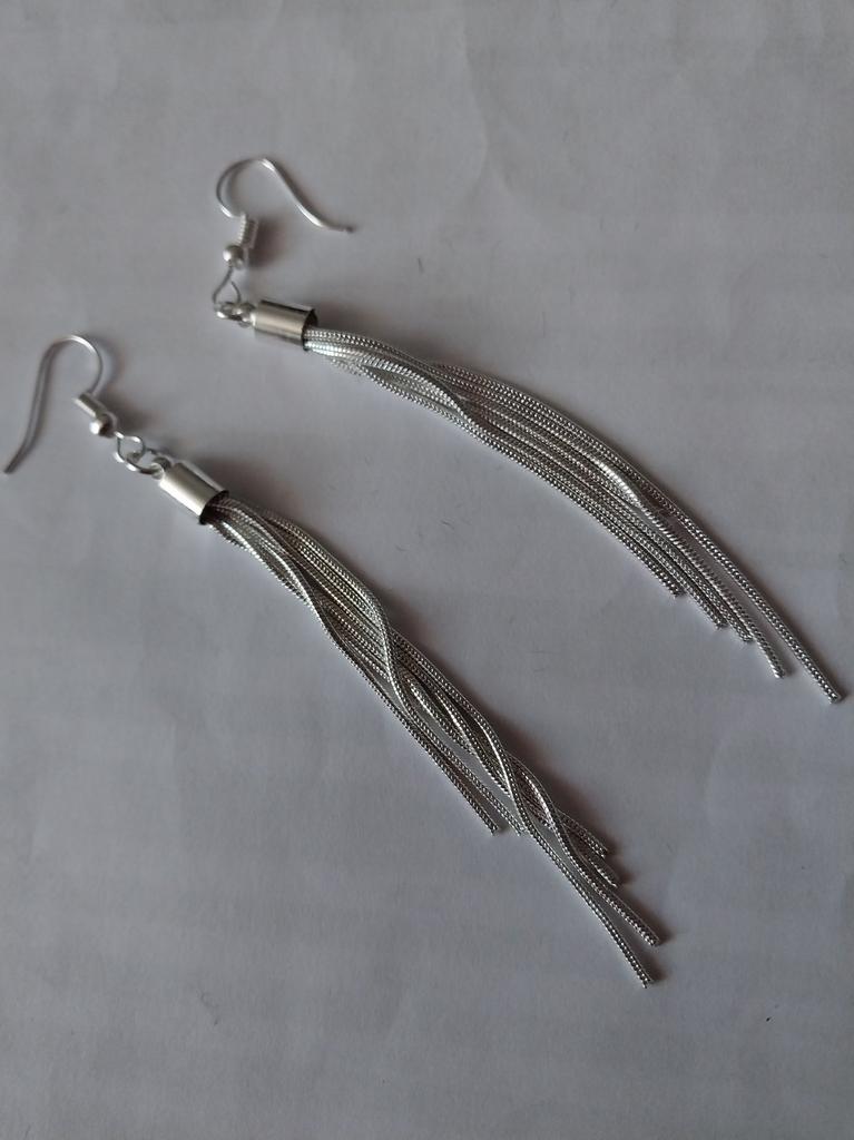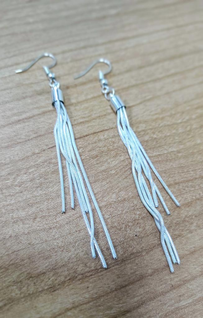 Women Fashion Jewelry Silver Color Long Hook Tassels Drop Dangle Earrings