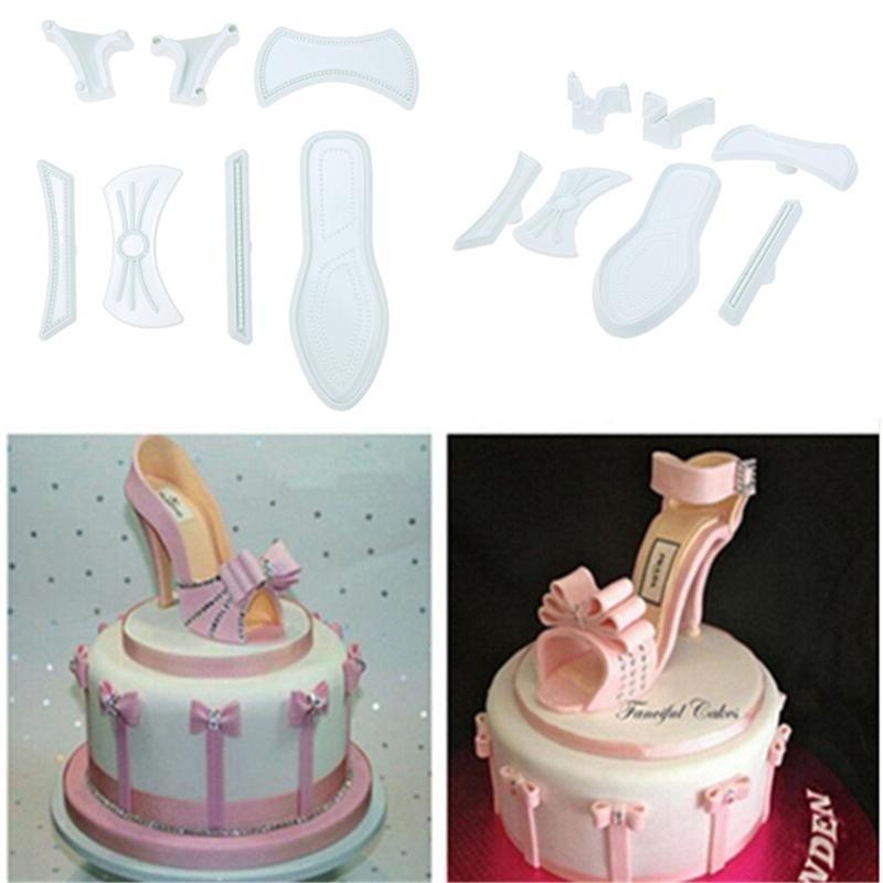 9pcs / Set High Heel Cake Embossed Mold DIY Food Grade Plastic Chocolate Candy Fondant Mold Kitchen