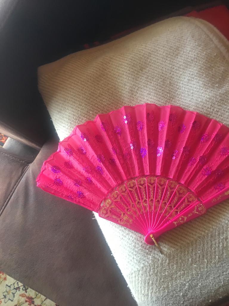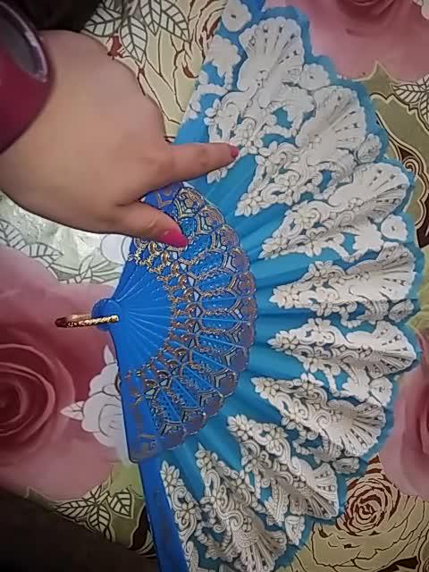 Cute Ethnic Dance Golden Tone Hand Held Flower Fan