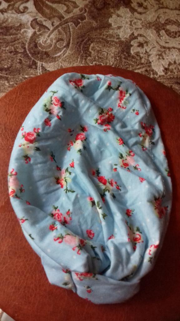 The turban fit me well, it fits nicely, but it is 100 percent synthetic, as it says - polyester, the seams are not treated. The seller provides false information about the product!
