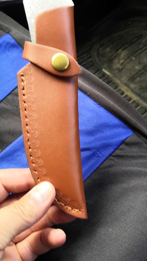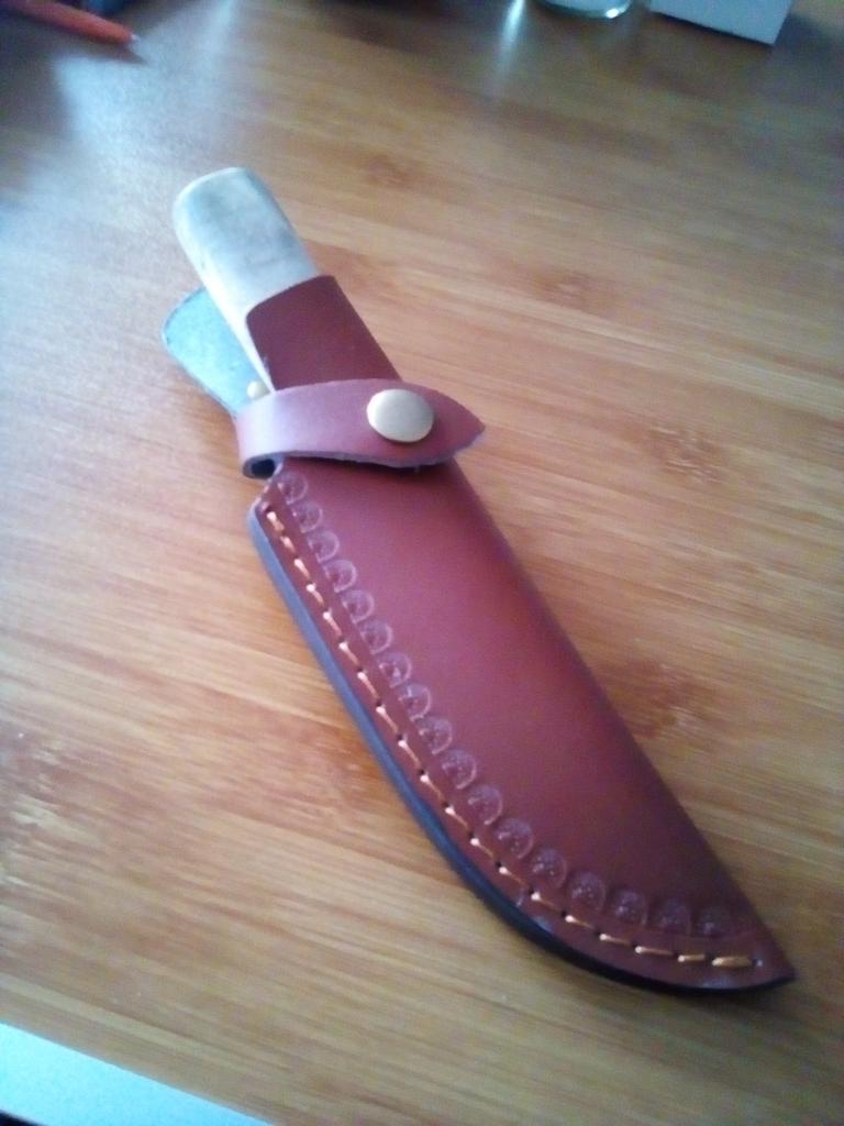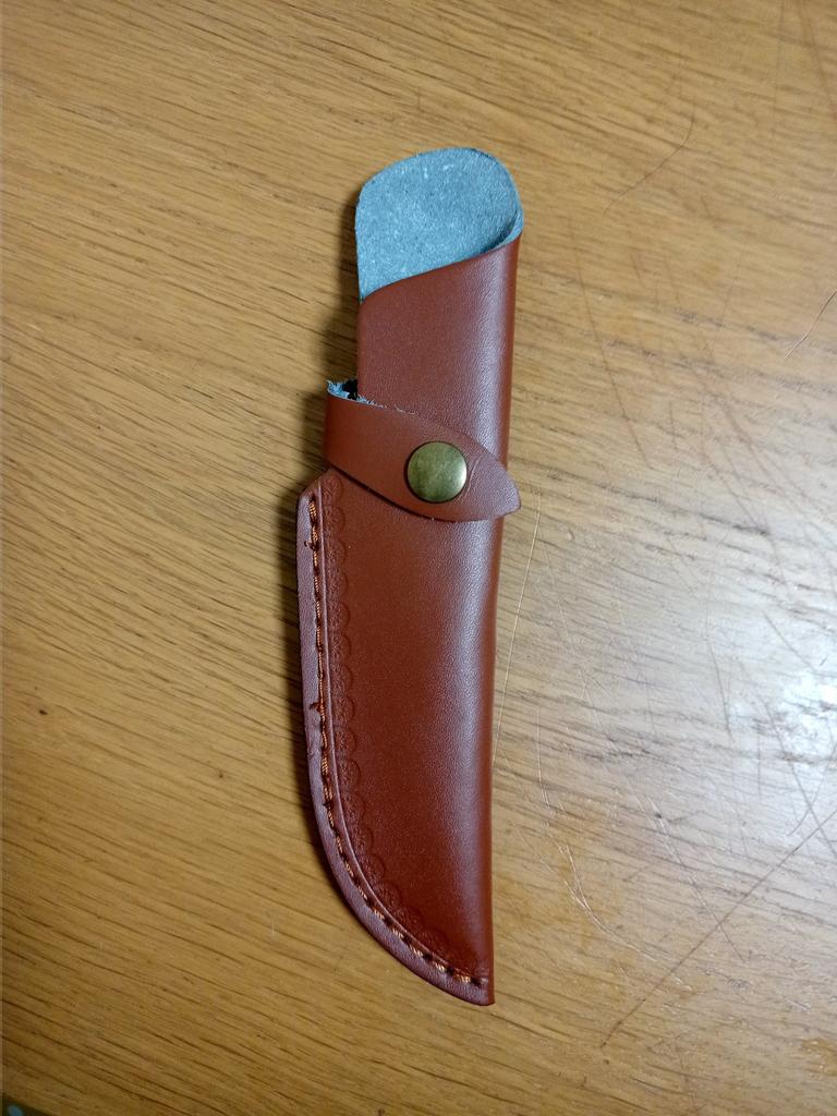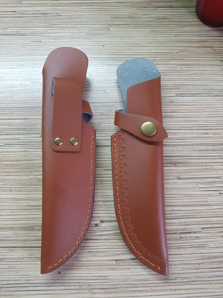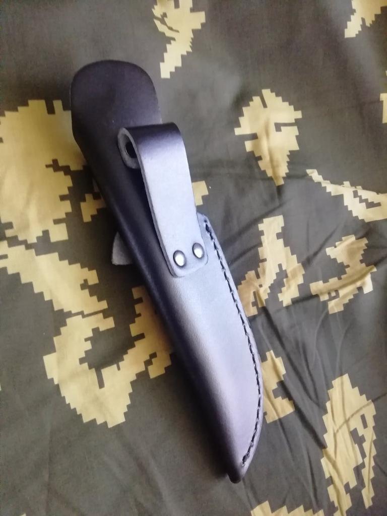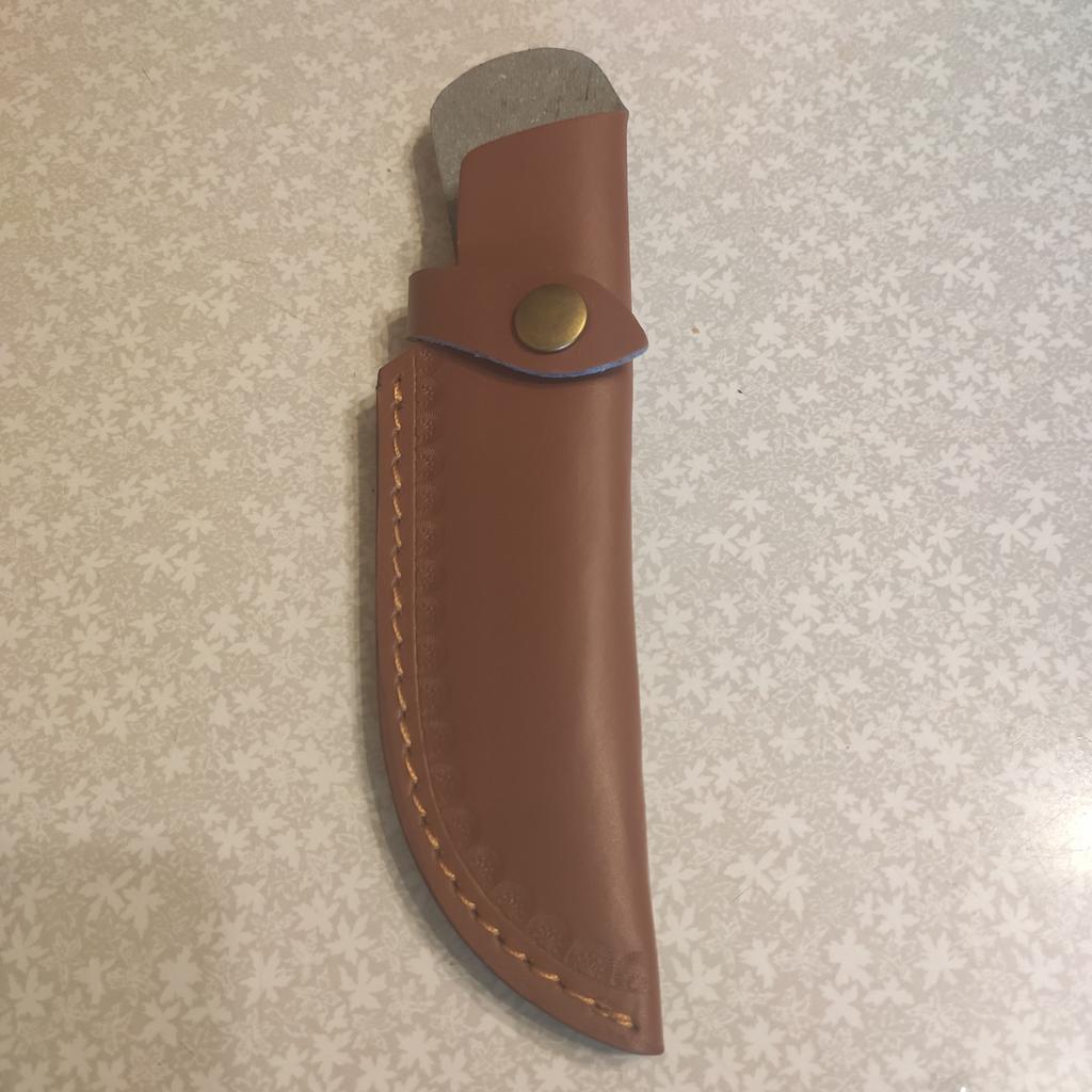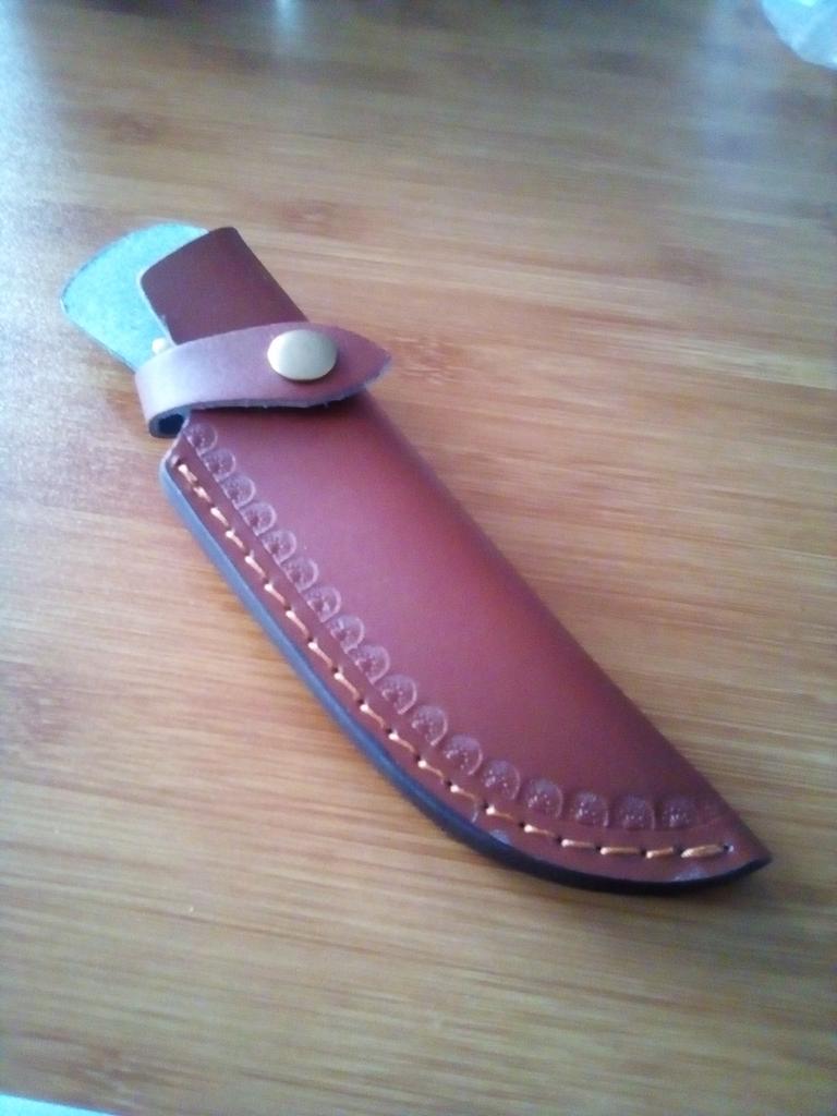 A small scabbard for a normal knife and not leather but a leather substitute