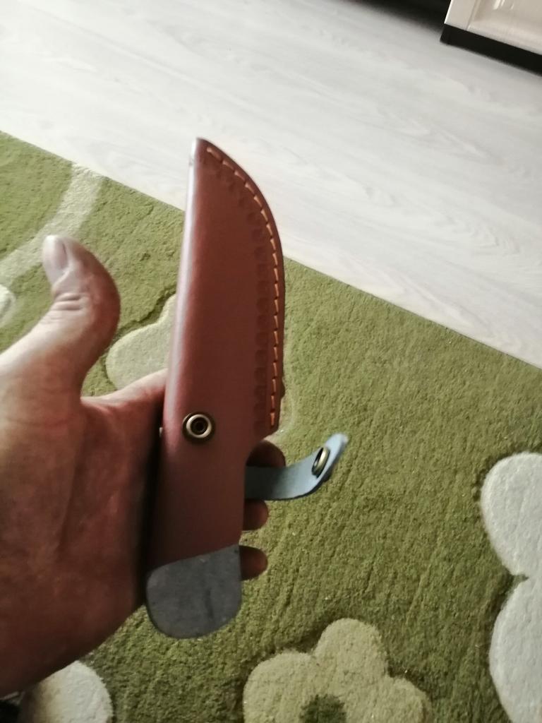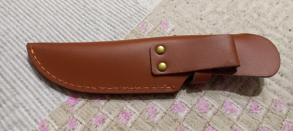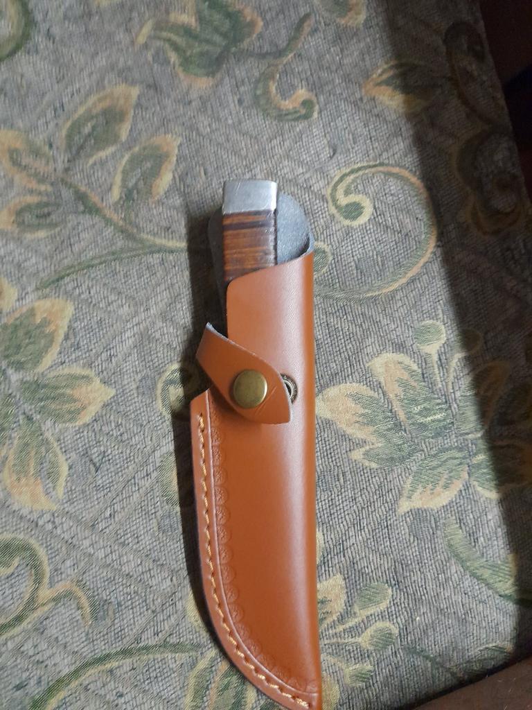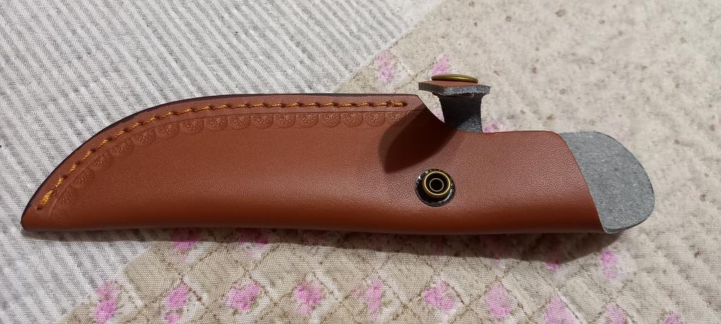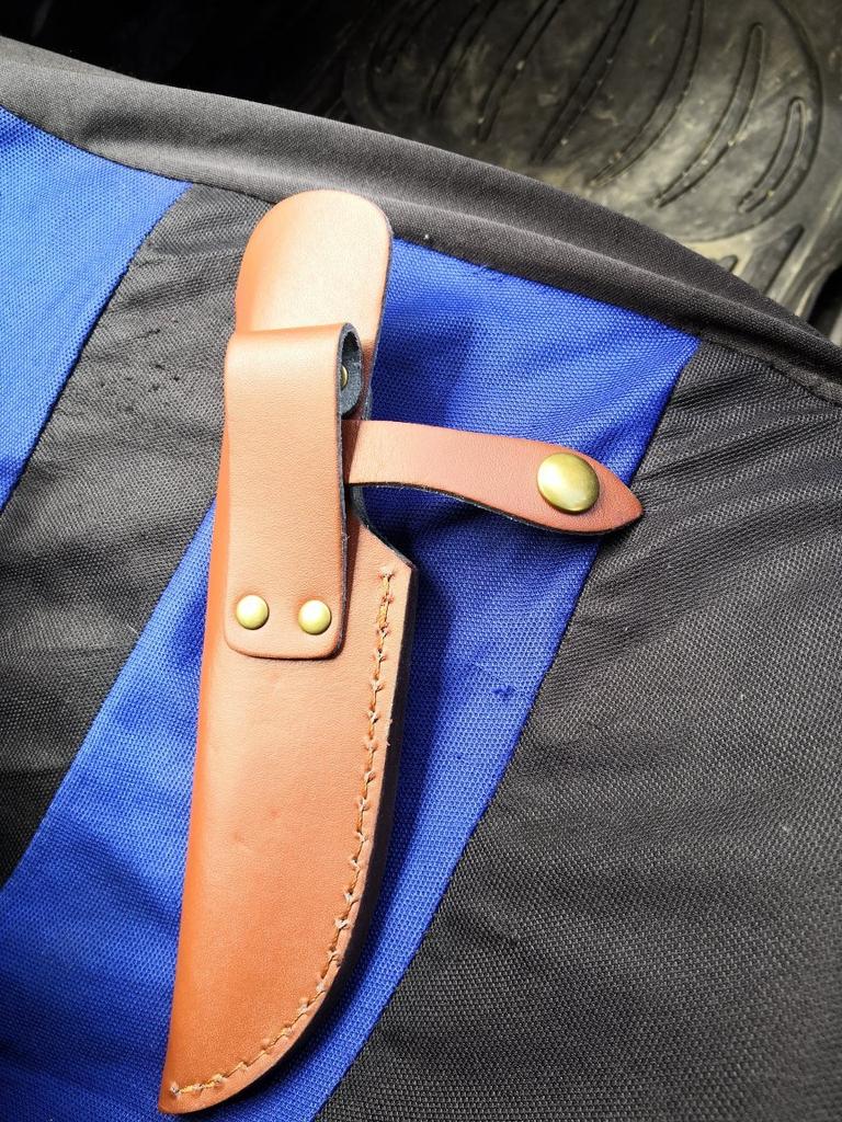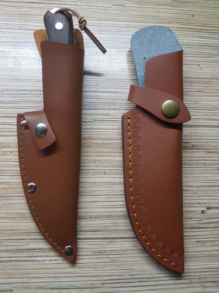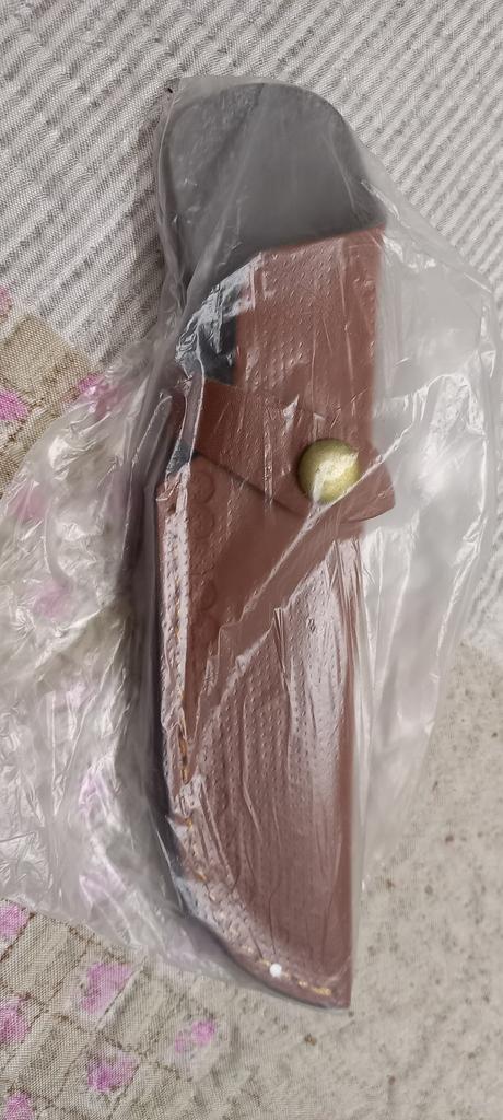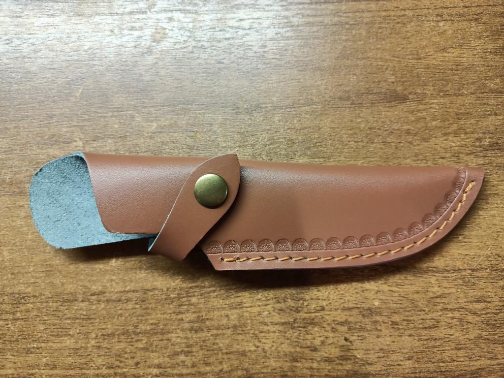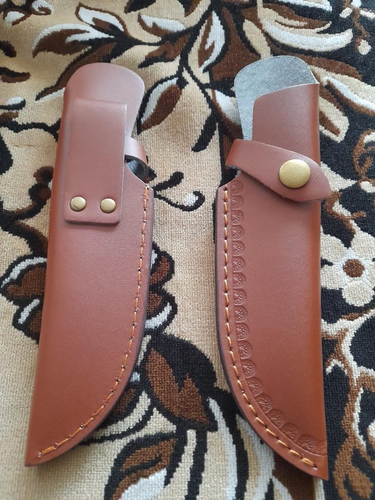 A small scabbard for a normal knife and not leather but a leather substitute
