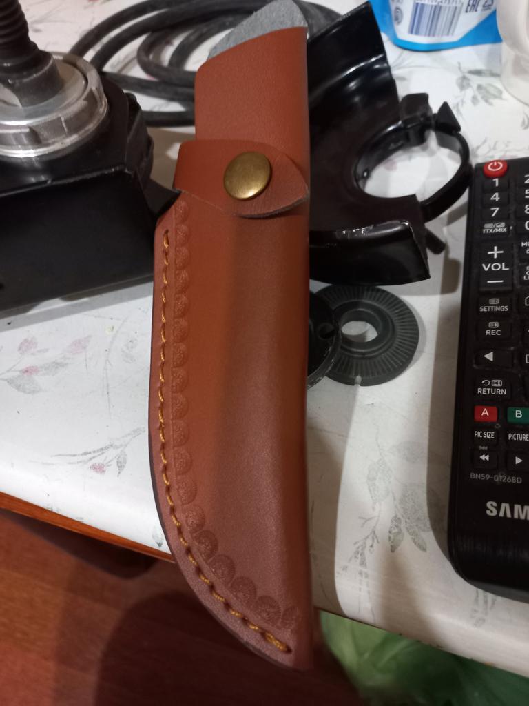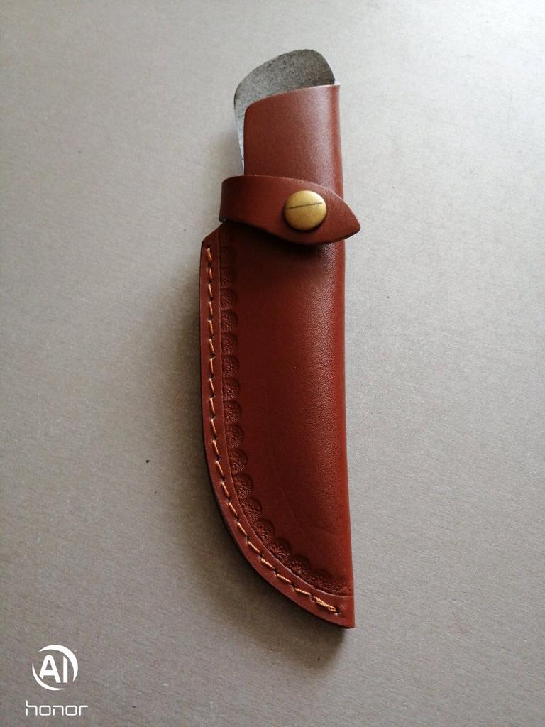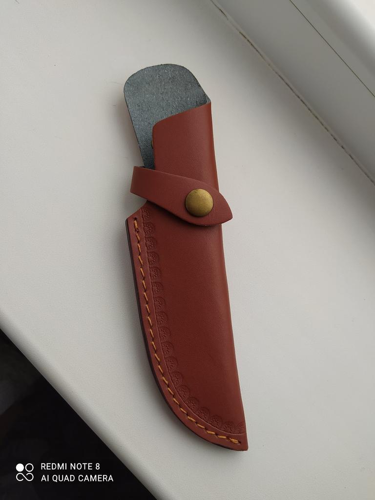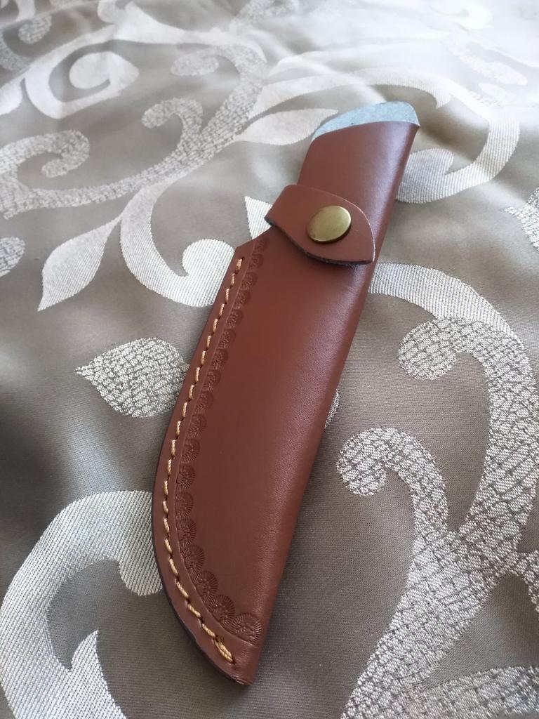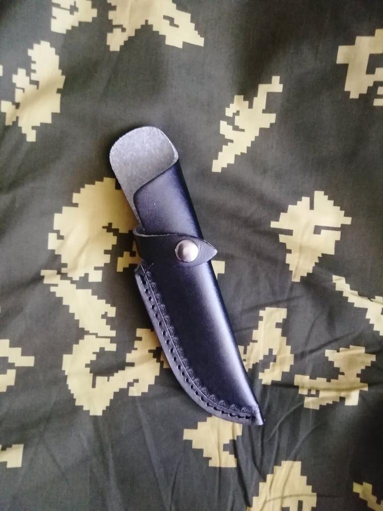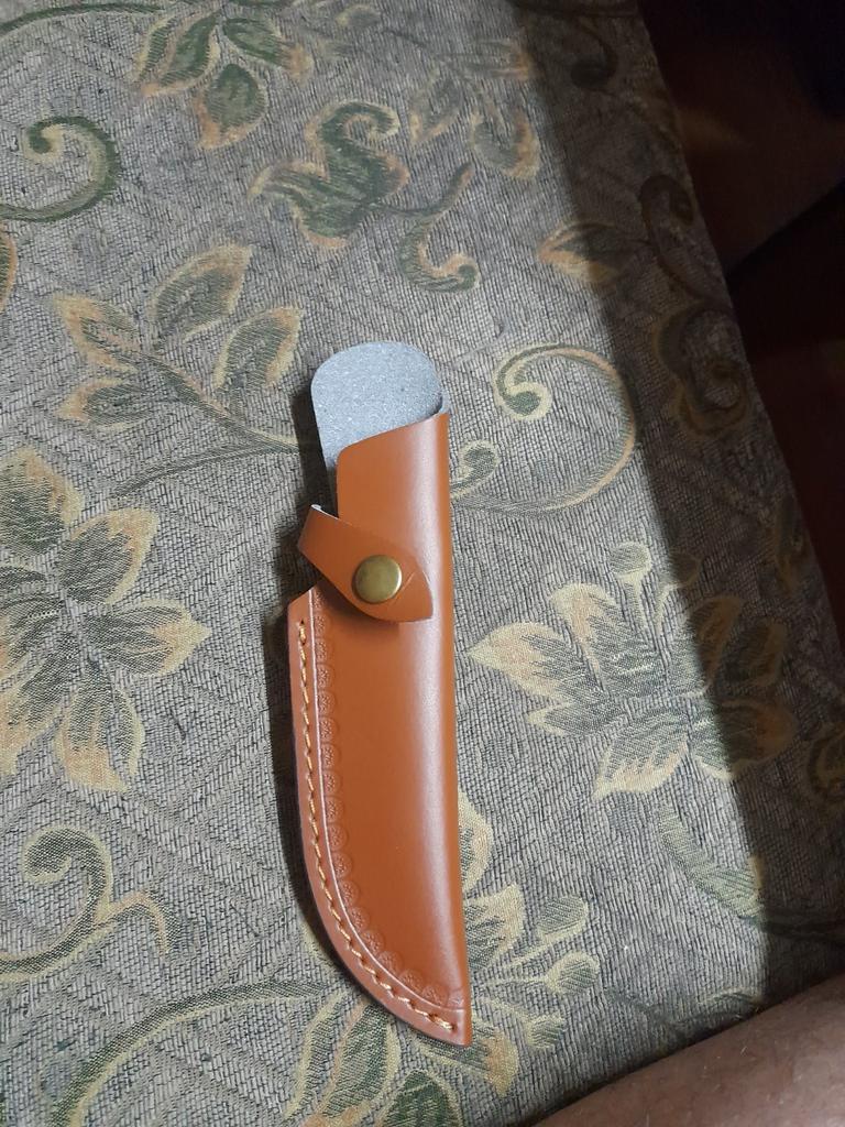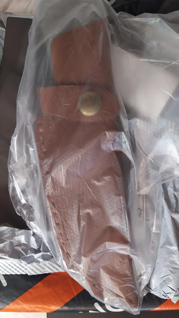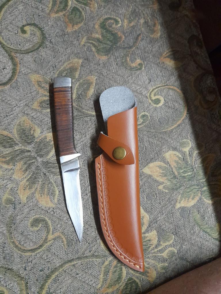 A small scabbard for a normal knife and not leather but a leather substitute