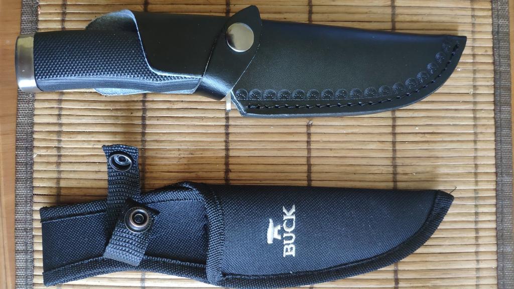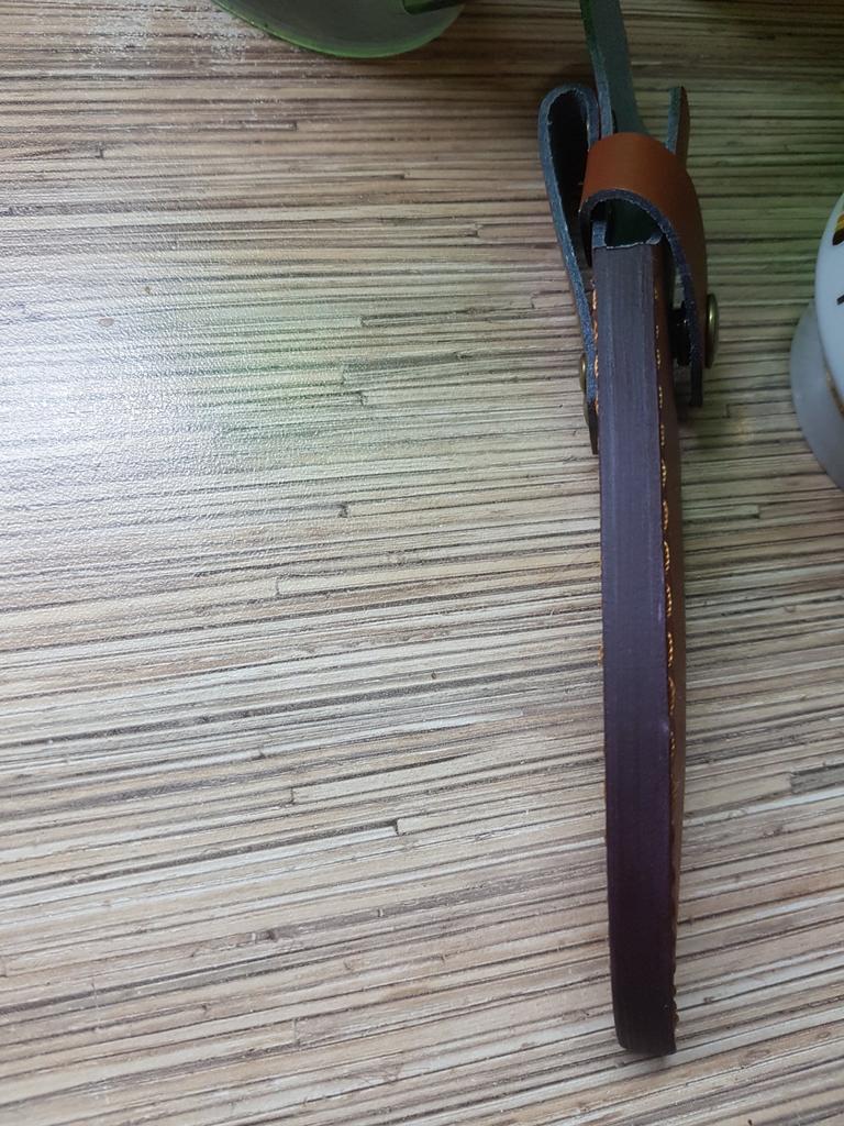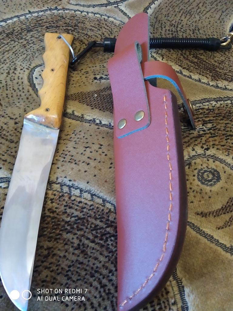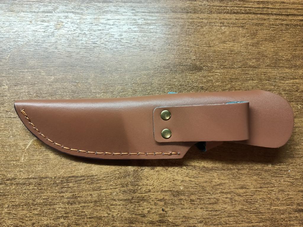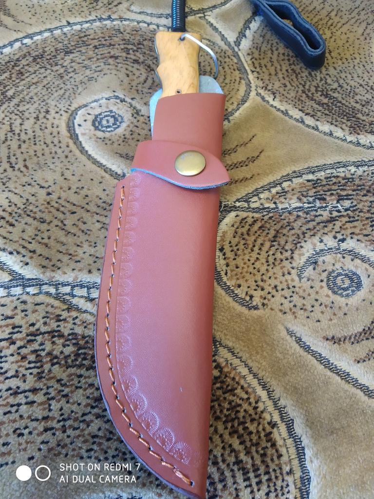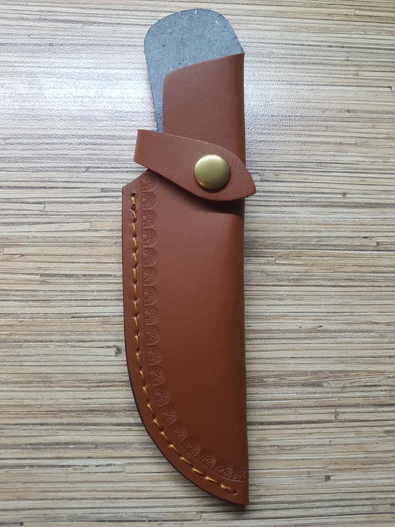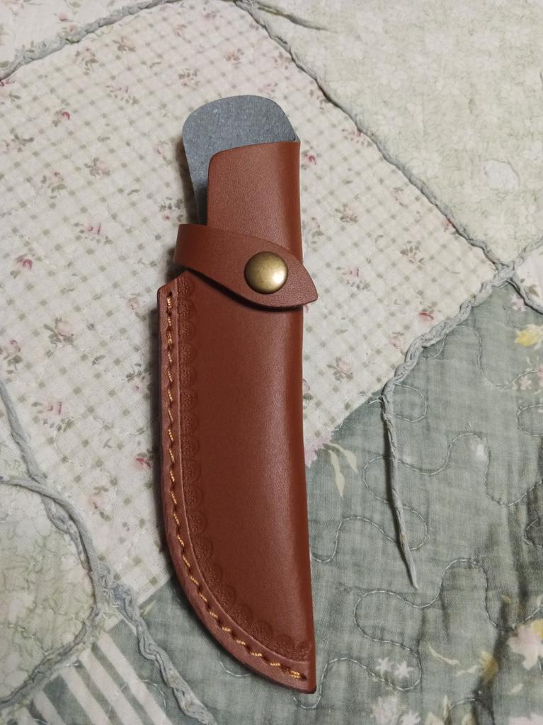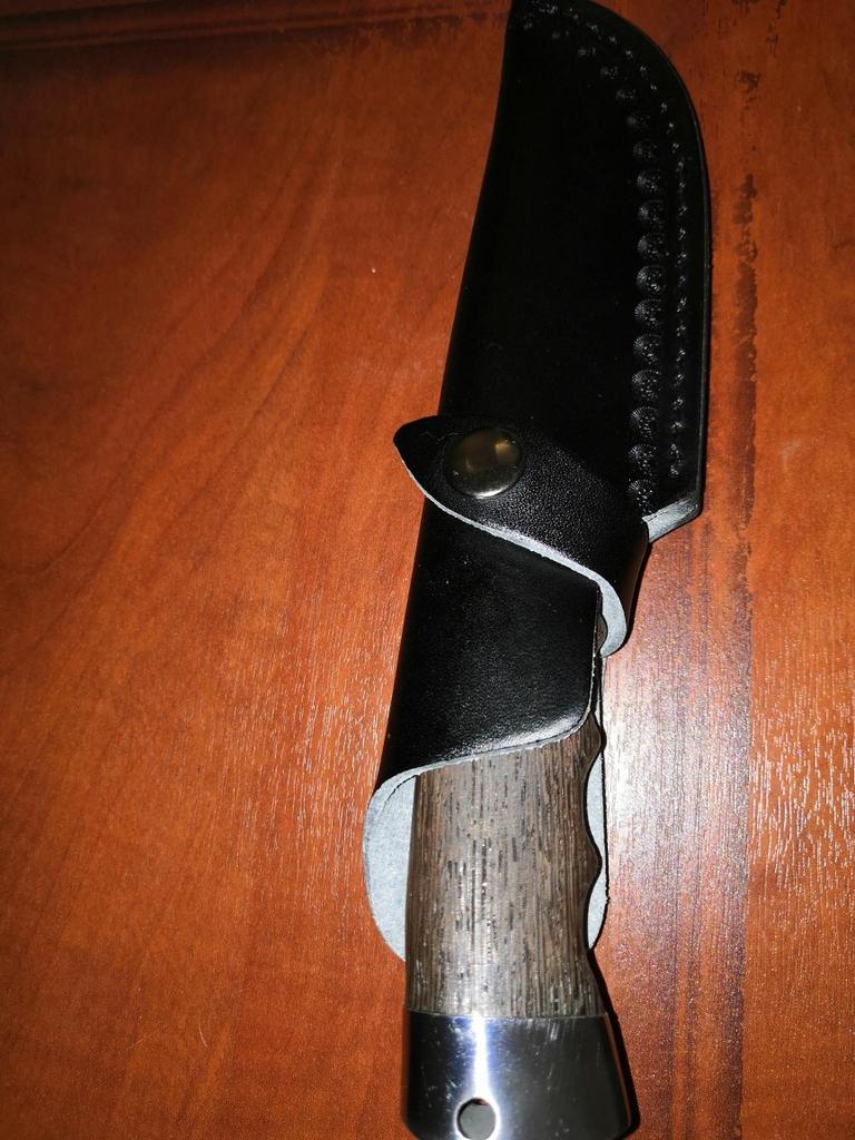 A small scabbard for a normal knife and not leather but a leather substitute