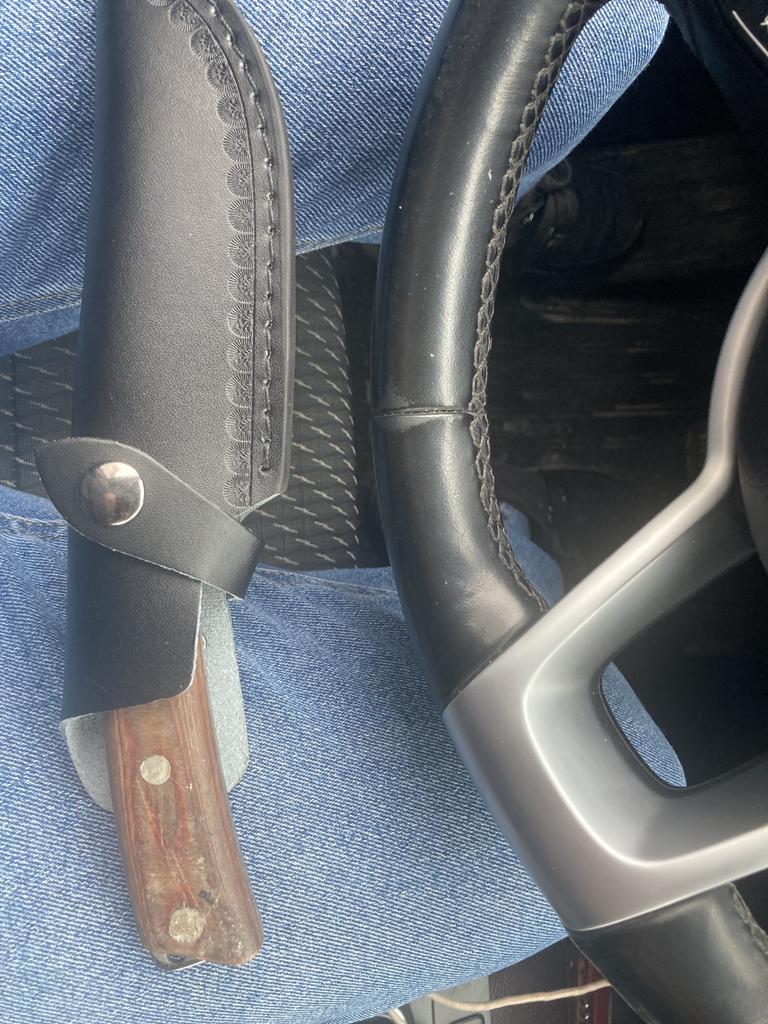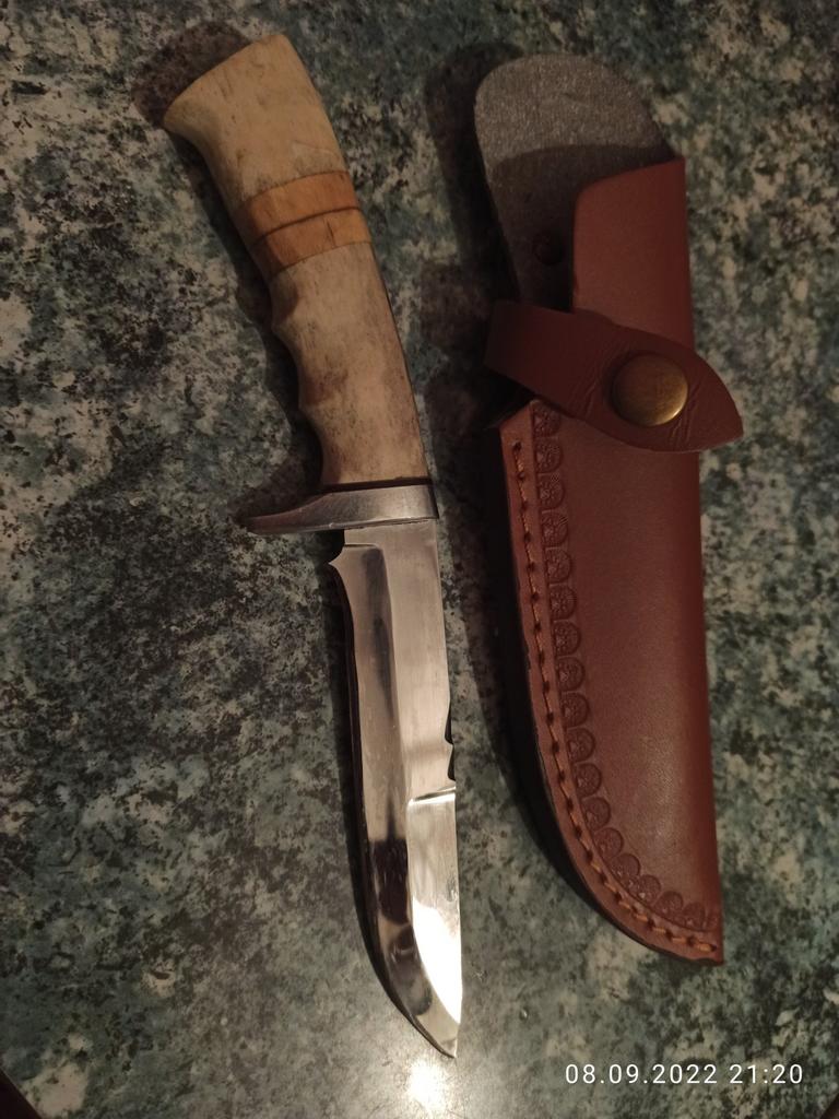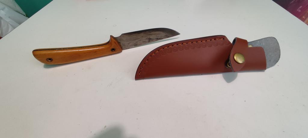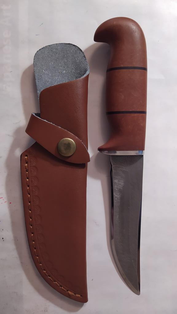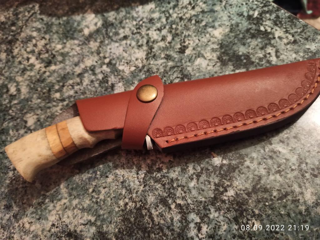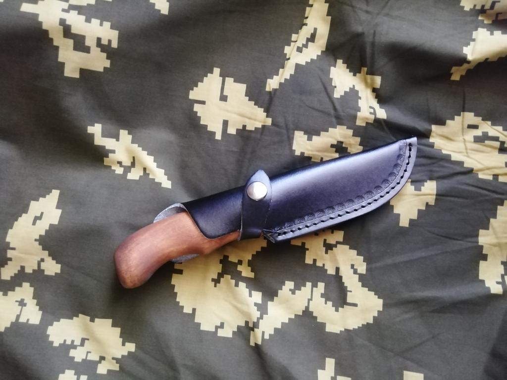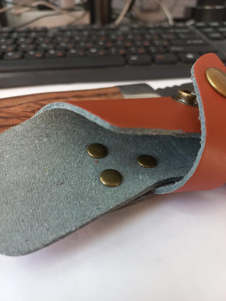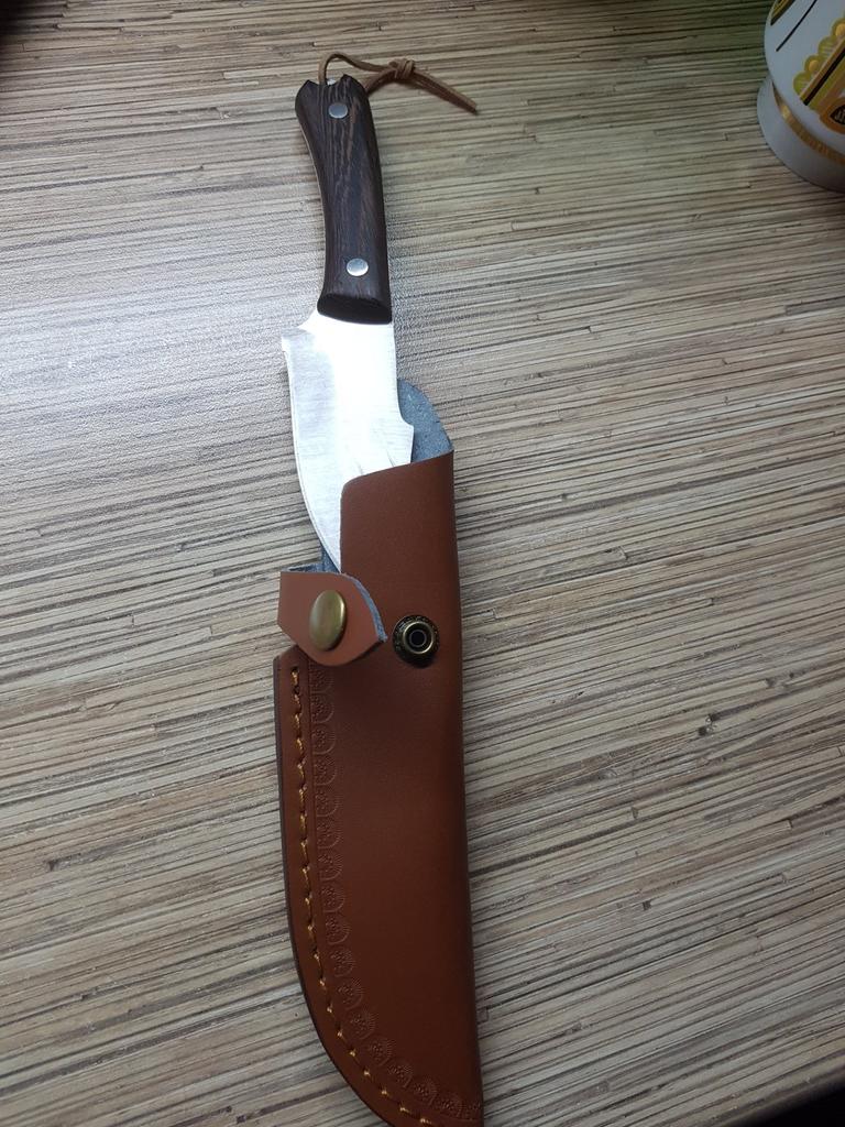 A small scabbard for a normal knife and not leather but a leather substitute