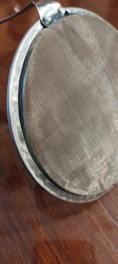 The skimmer is a weak metal, the handle arrived bent, I straightened it out as best I could, but the mesh is fine, it removes foam from the broth in no time.