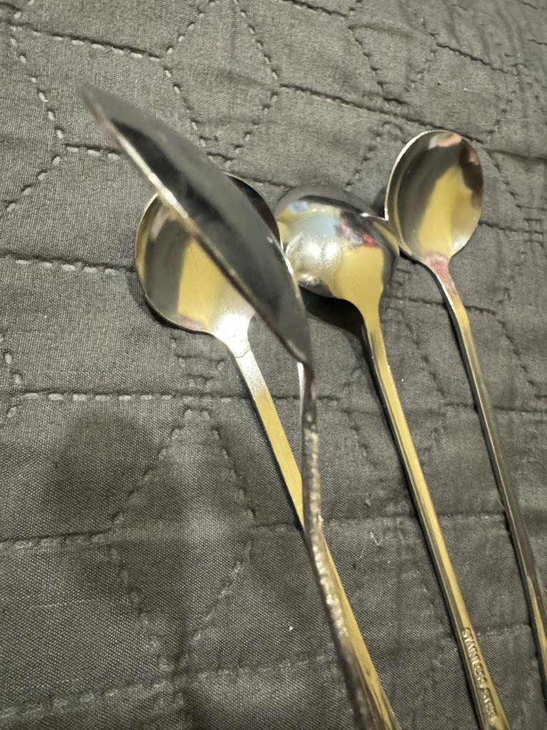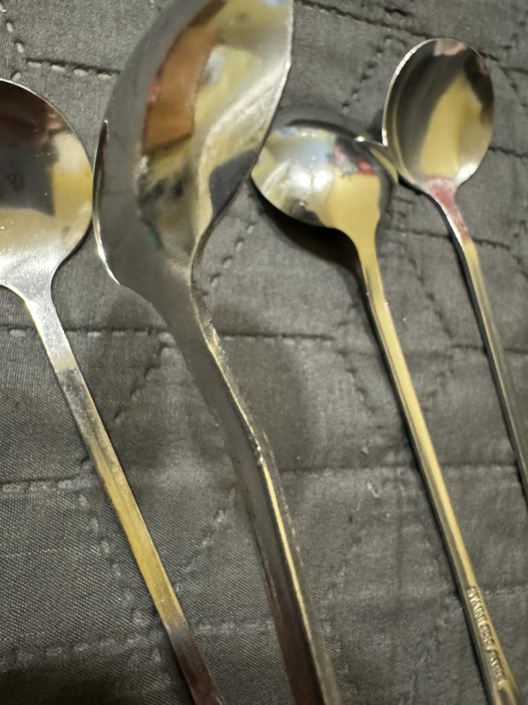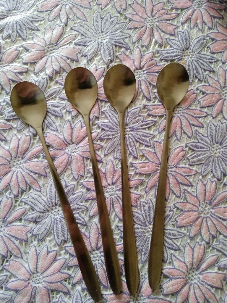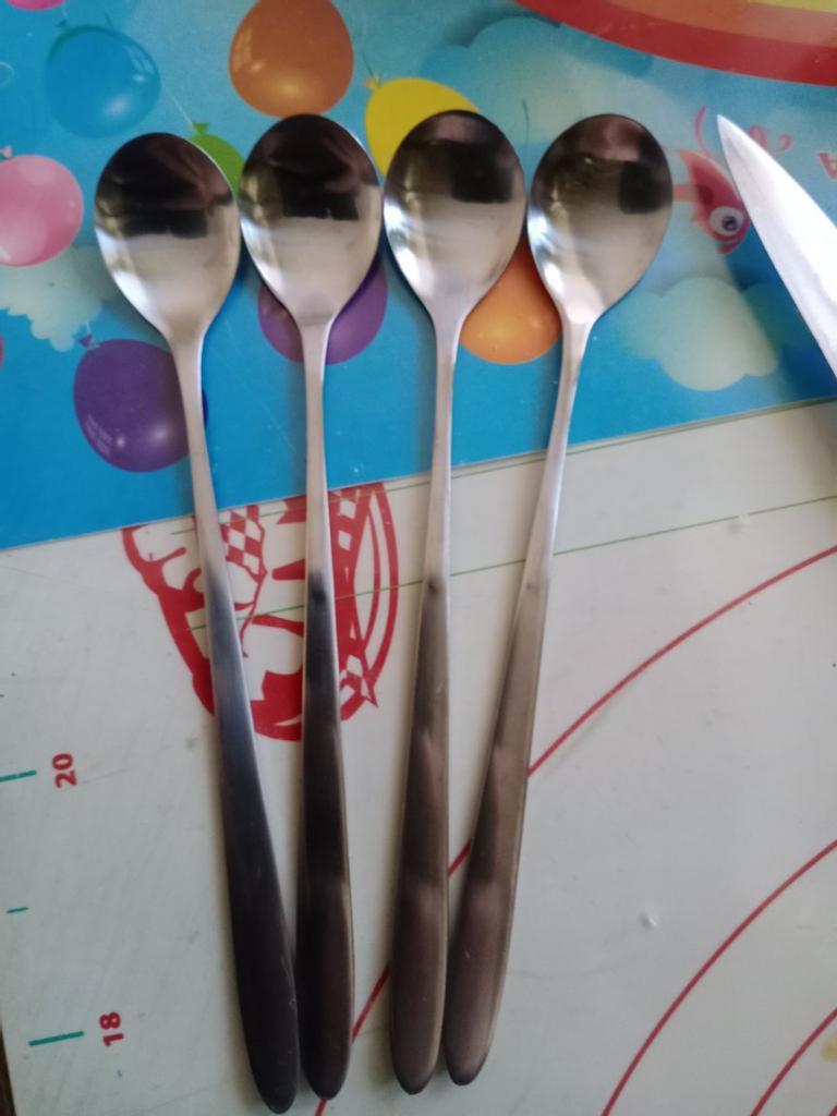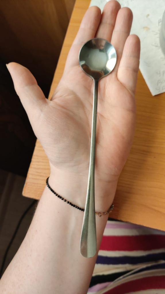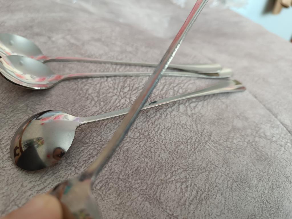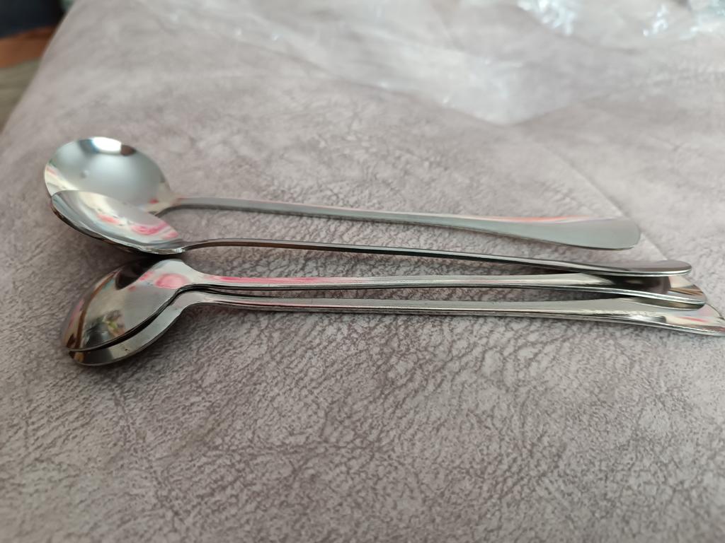 You can't see it in the photo, but they are really round 😁 Nice spoons. I'll add. We really use them in our family. Nice, not thin, not thick metal, comfortable handle. We've had spoons with long handles for a long time. The only thing that's not usual is that they are really round, I wanted oval ones. But whoever reads the comments will know about it now.