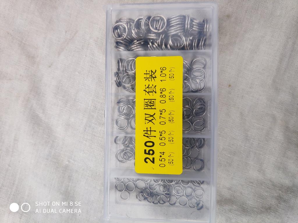 250pcs Stainless Steel Double Loop Fishing Ring 5 Size Mixed Split Clip Swivel Quick