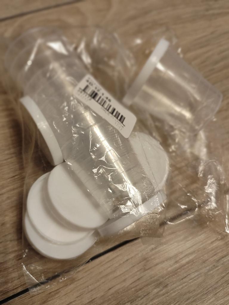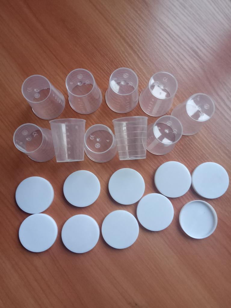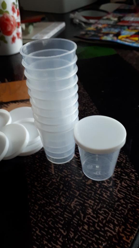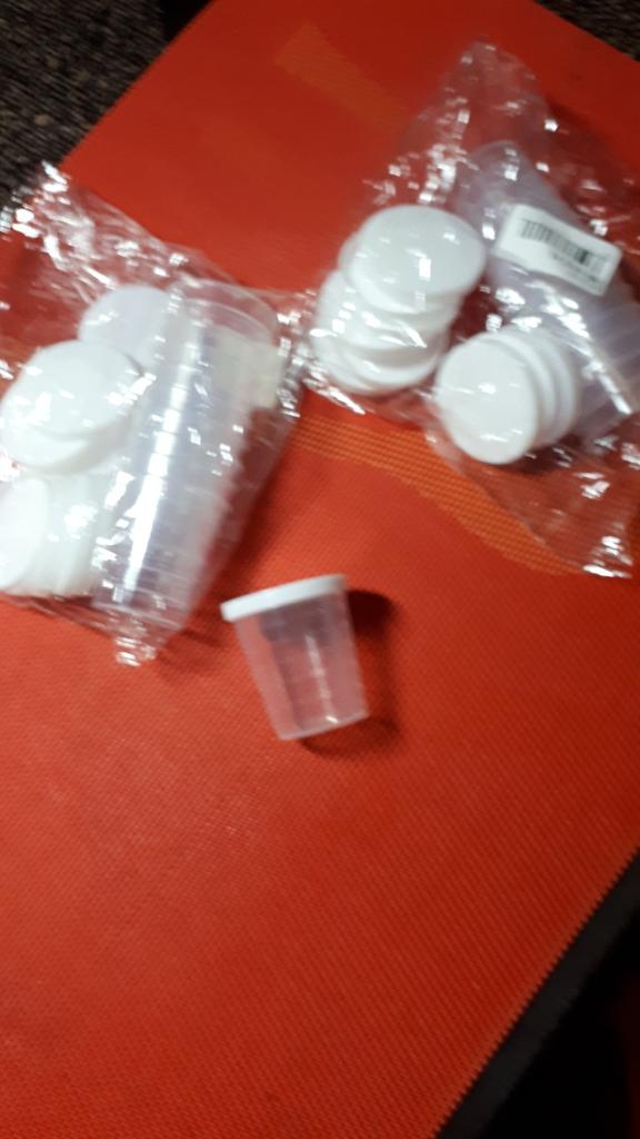 Good quality measuring cups to be used in lab for water-based samples. Caps a bit loose, so I'll have to find a way to seal the cups so that they don't leak during transportation. Extra work to seal the caps = 4 stars instead of 5. Cups should work fine for dry, non-powdery content. Fast delivery.