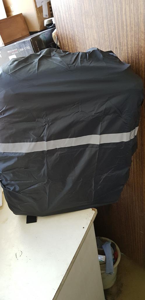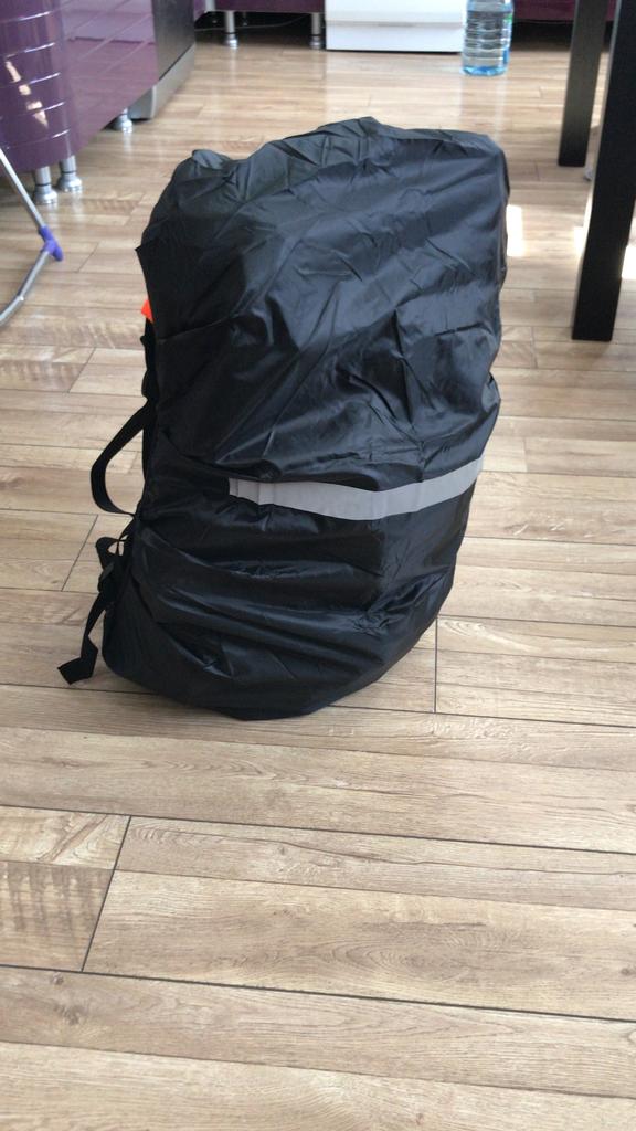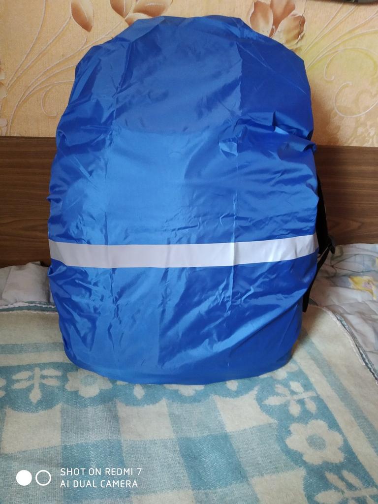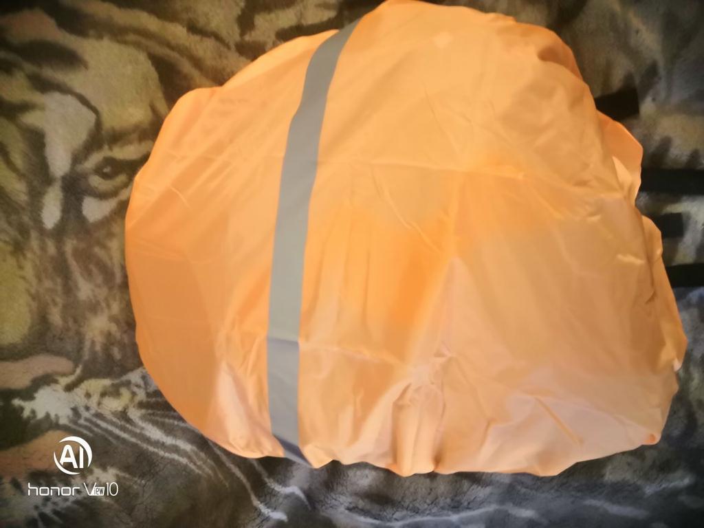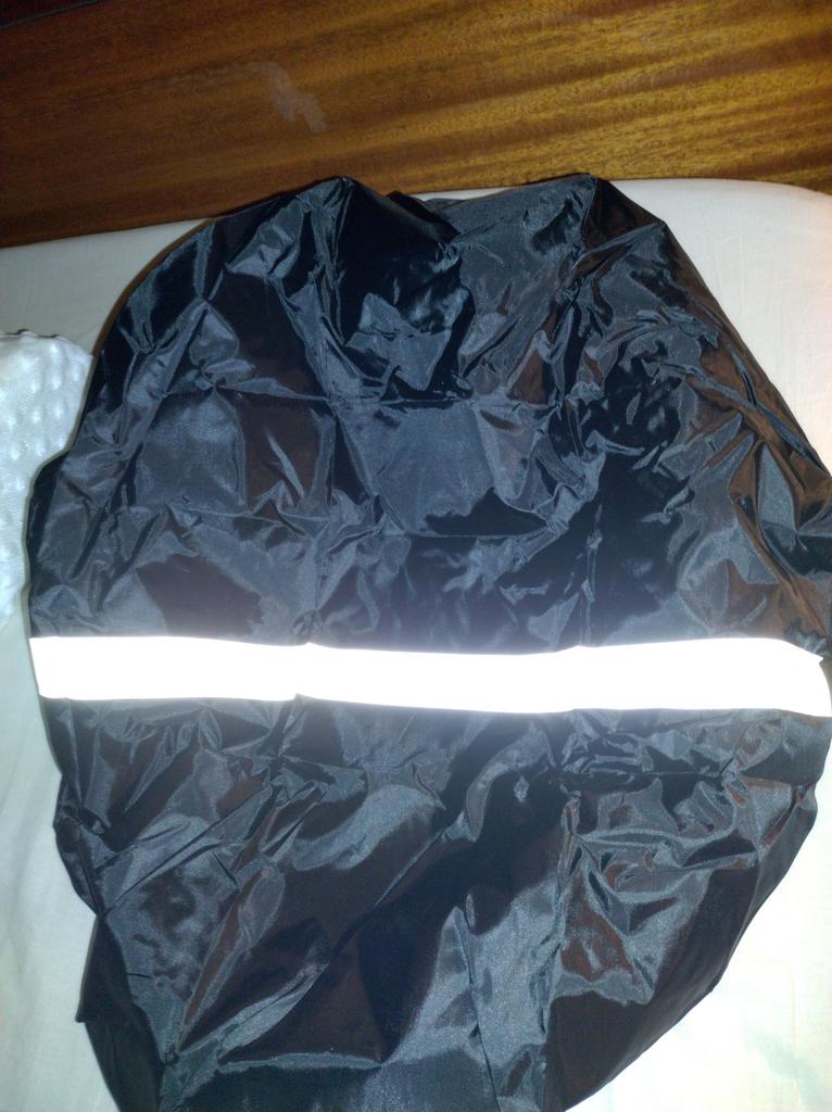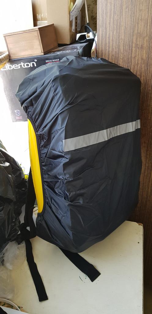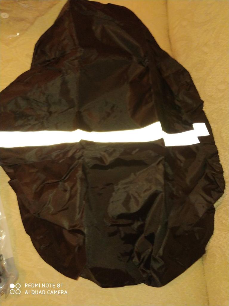 Material and elastic make a good impression. size M fits over an average sized and filled school backpack and still has some space at the top and bottom. The color is strong, the stitching is clean, the reflective tape works and is printed correctly. The black one has a silver inside and you can turn it around and it still reflects very well.