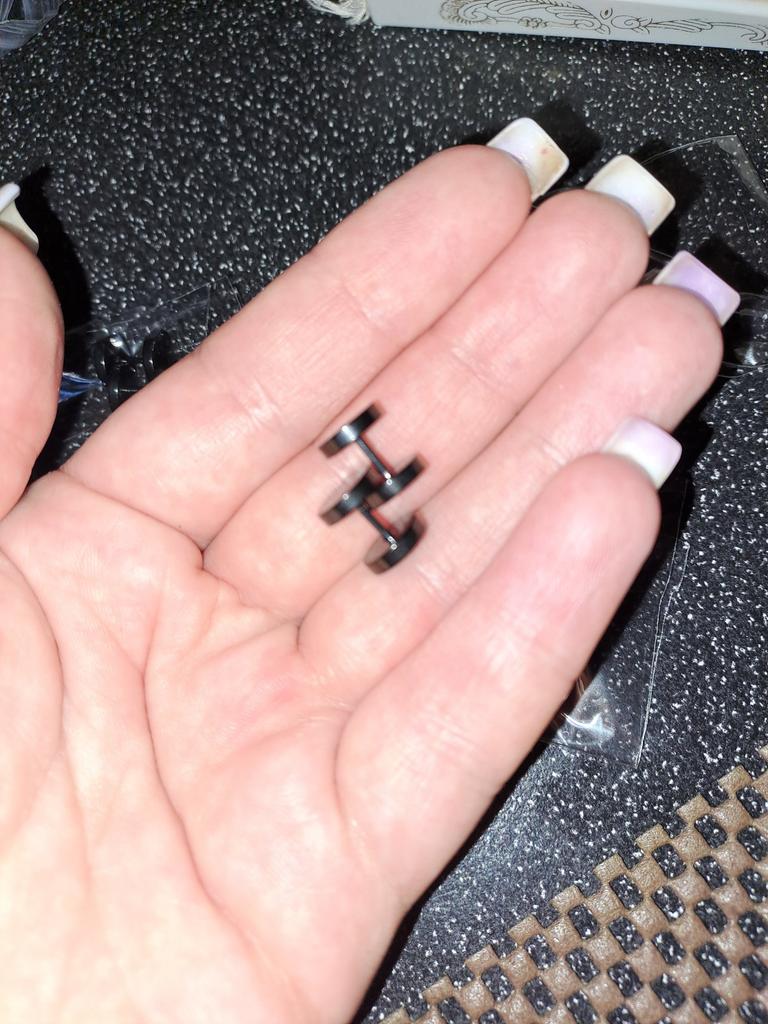Great earrings, I used to wear only rings and it looks completely different, but you need to monitor them more and take them off and clean them, since the width does not allow the skin to get rid of dead skin, which causes a white and not very pleasant-smelling plaque. I recommend the purchase.
