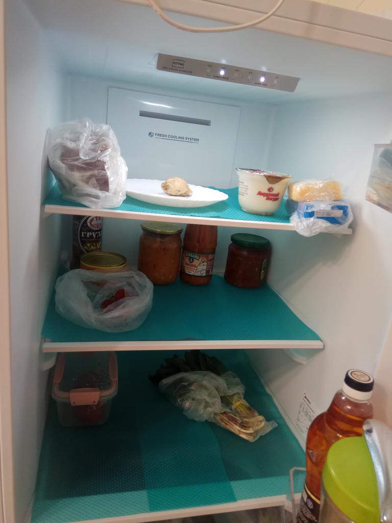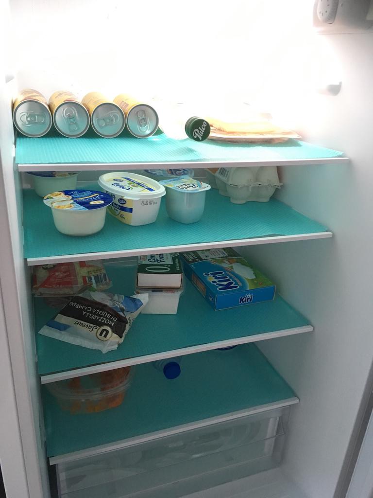 Ließ sich gut zuschneiden und anbringen. Wasn't difficult to get the right size out of it and didn't curl in the fridge.