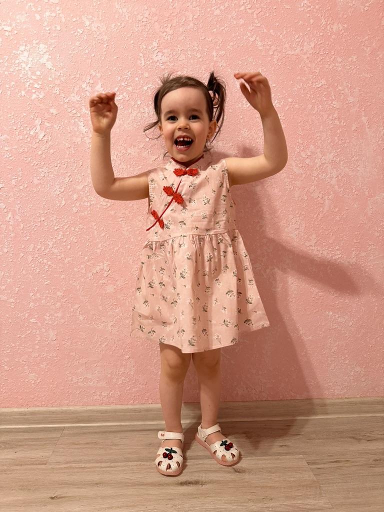 New Brand Summer Girls Dresses Snow Lotus Cheongsam Dress Girl Clothing Princess Dress Children