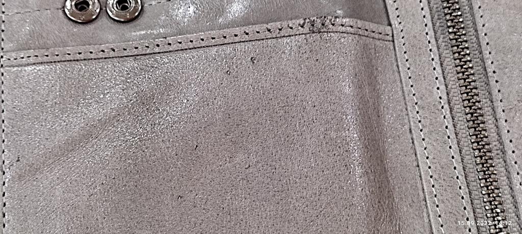 The central button clasp is sewn crookedly, there is a strong unpleasant smell.