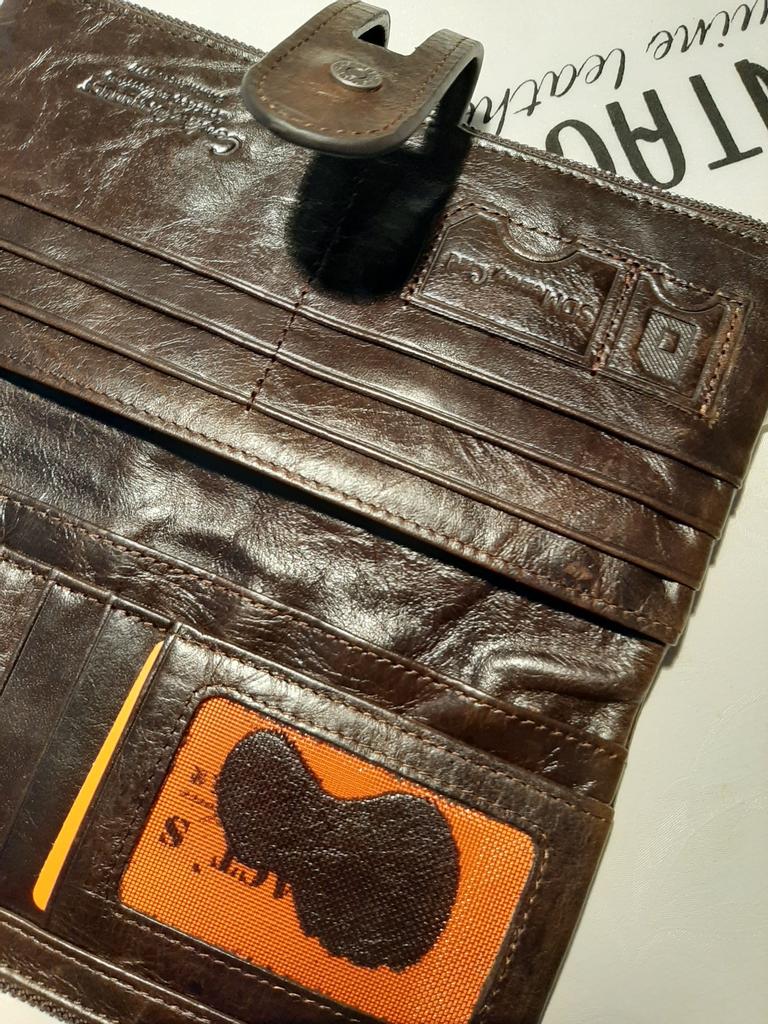 I ordered two wallets, very high-quality performance. Leather Everything as in the description and in the video review. Packed additionally in a high-quality fabric bag with a drawstring. The color of the large wallet is bright red. I recommend I want to order another wallet a little later, but of a different model