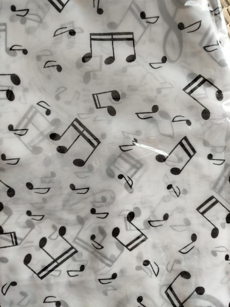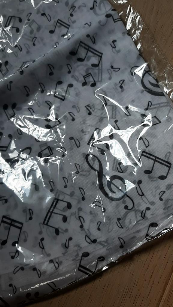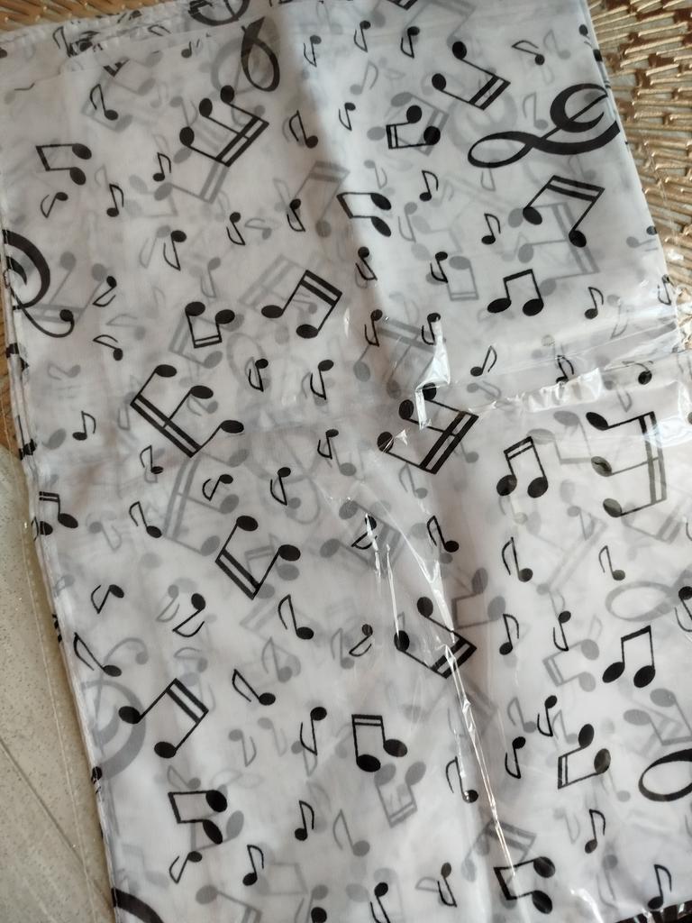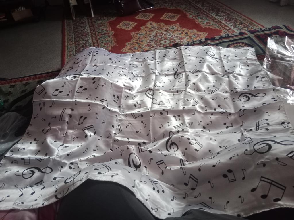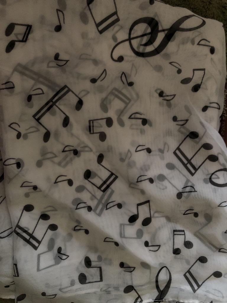 Wonderful musical scarf. The fabric is pleasant, the seams are neat.