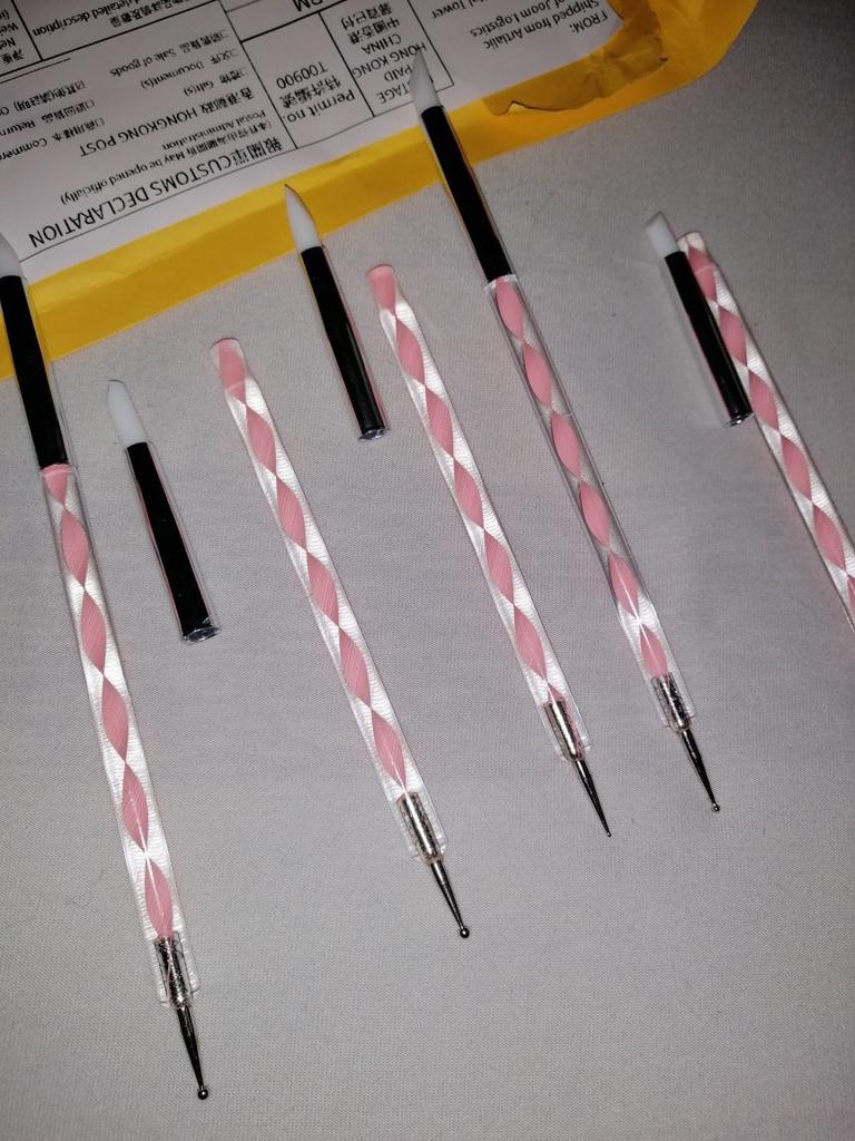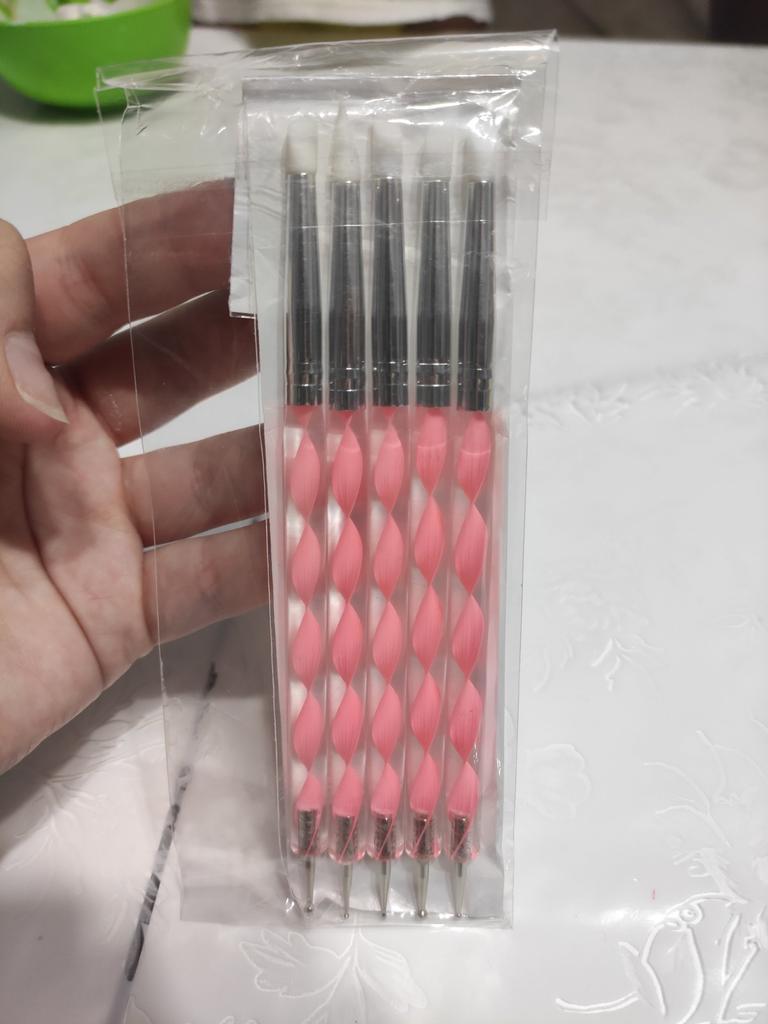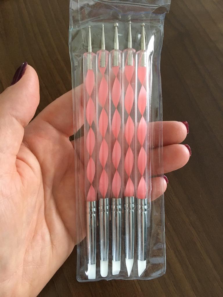 5Pcs 2 Way Nail Art Acrylic Silicone Point Flower Double Head Nails Pen Stainless Steel Dotting Tool