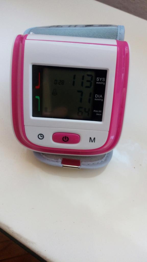 Step 3: During measurement, the middle of the wrist cuff should be the same height with the heart, The body and your wrist can not move, We recommend that you put a soft cushion under the elbow.