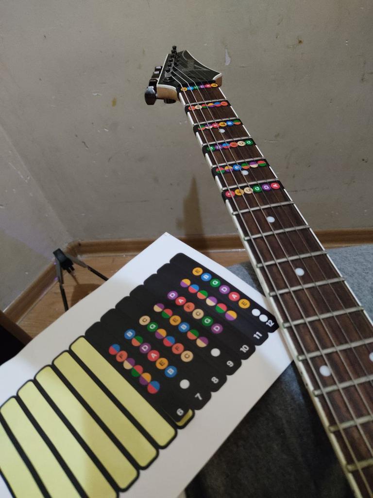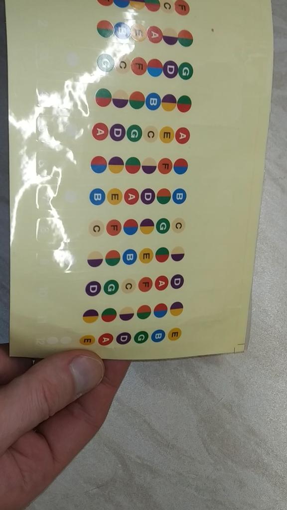 Arrived well with me. Still have to put the stickers on the guitar. Hope they help me to learn the instrument. It's nice that there are colored dots on a colorless background. Will post an update when I have them installed.