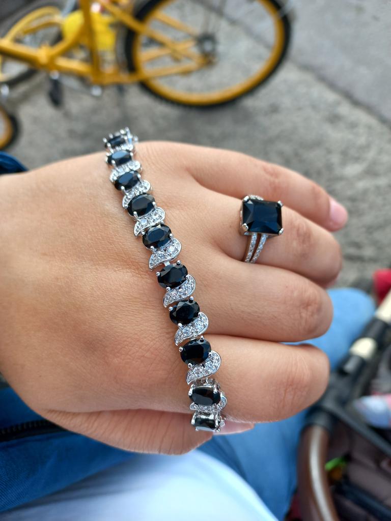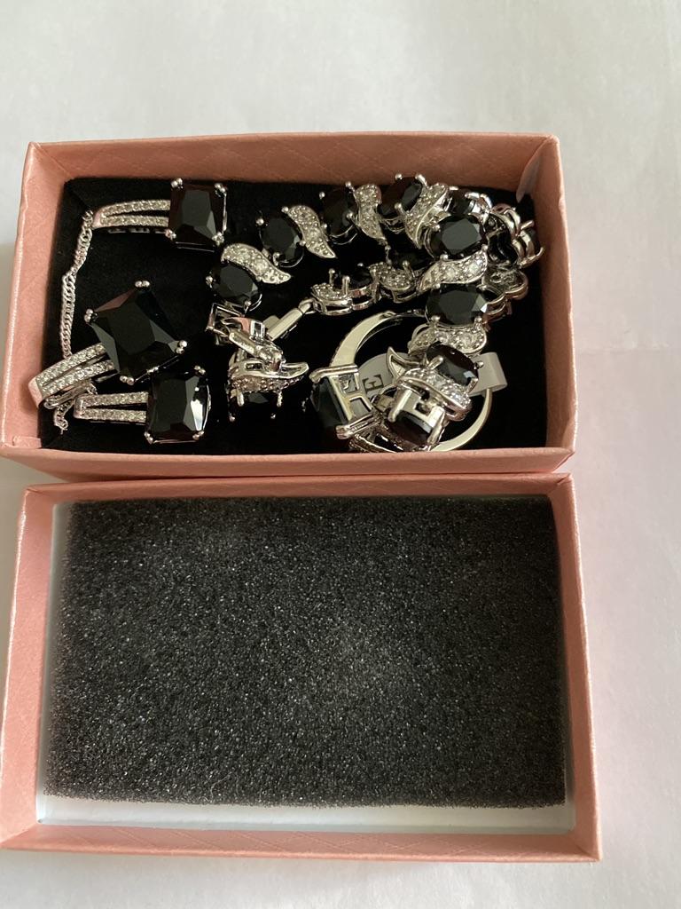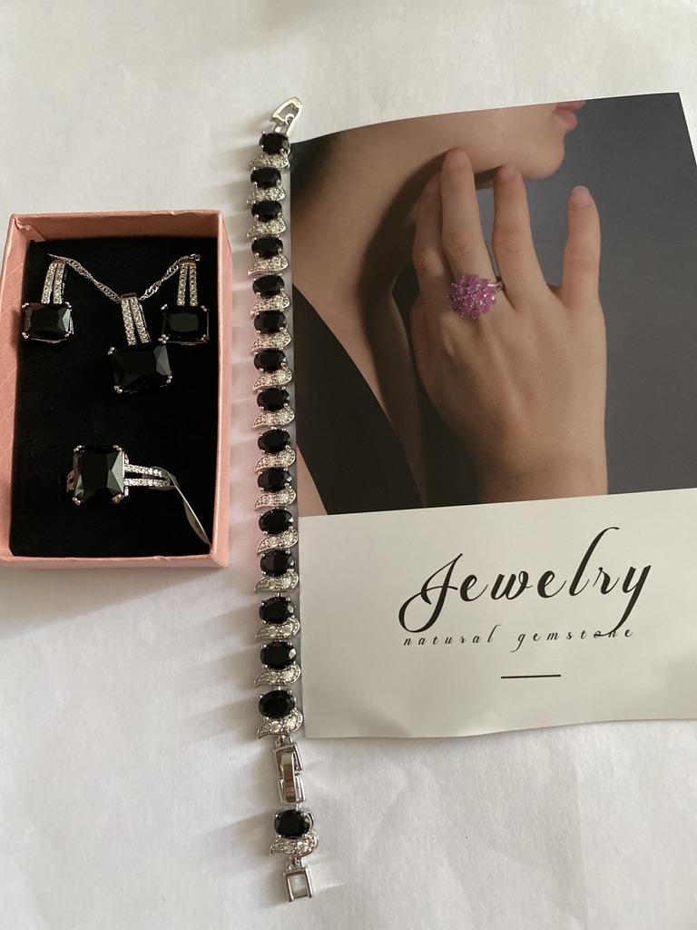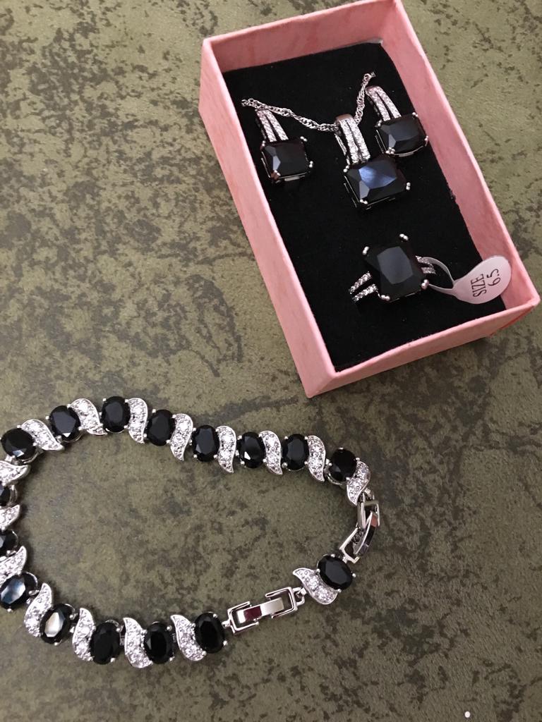 Silver Color Bridal Jewelry Black Stone White CZ Jewelry Sets For Women Wedding Earrings Rings