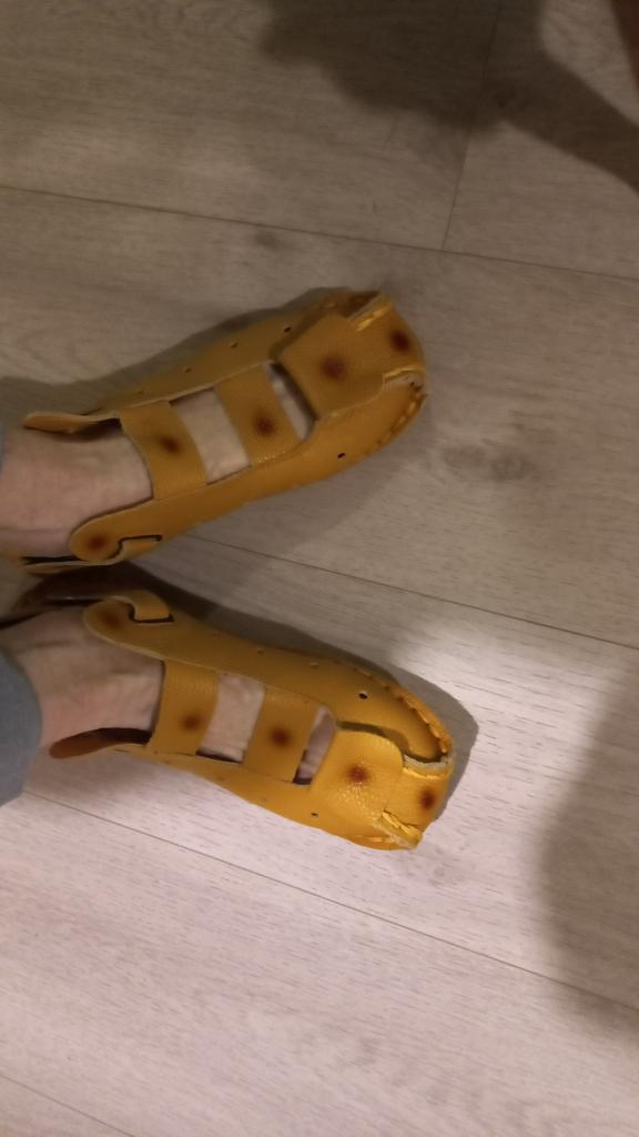 Even though the shoes are natural, they have rubbed a callus on the back, they are sewn from laskuta, and this seam ruins everything. And they are very light and comfortable.
