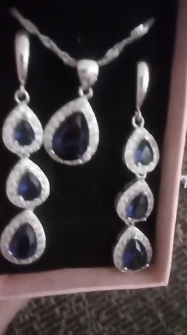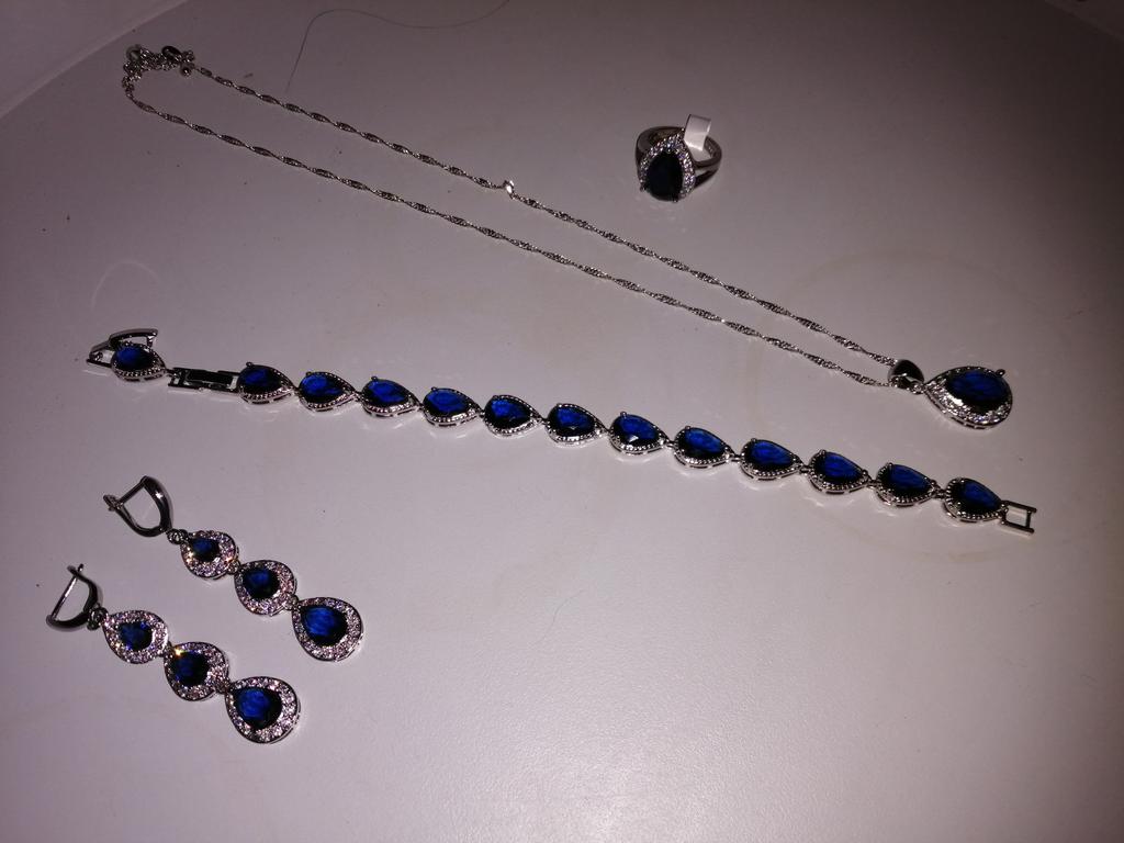 Silver Color Jewelry Blue Cubic Zirconia Jewelry Sets For Women Earrings Pendant Rings Bracelet