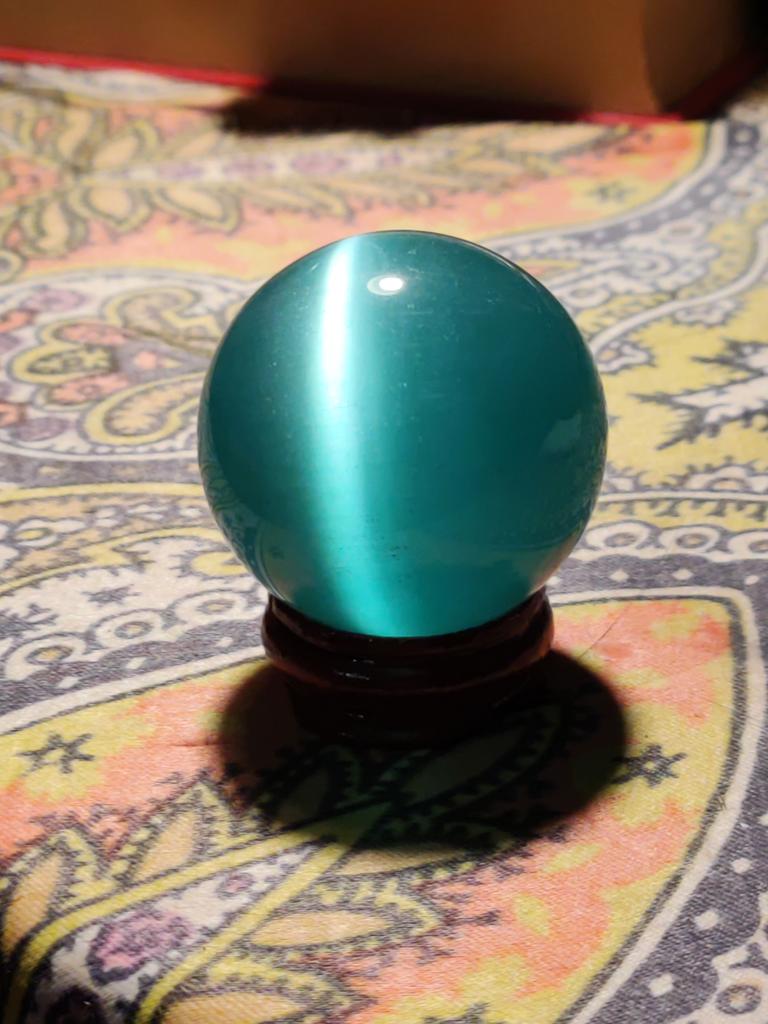 1PCS Asian Quartz Blue Cat Eye Crystal Ball Sphere 40mm Not Include The Base