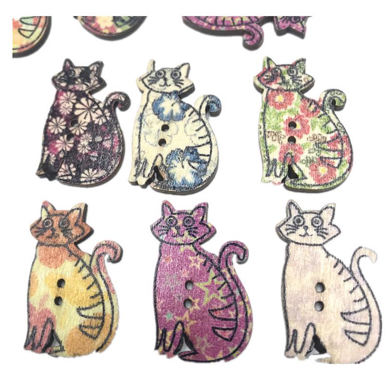 50Pcs Mixed Cat DIY Wooden Popular Scrapbooking Buttons Cartoon Sewing Animal Craft
