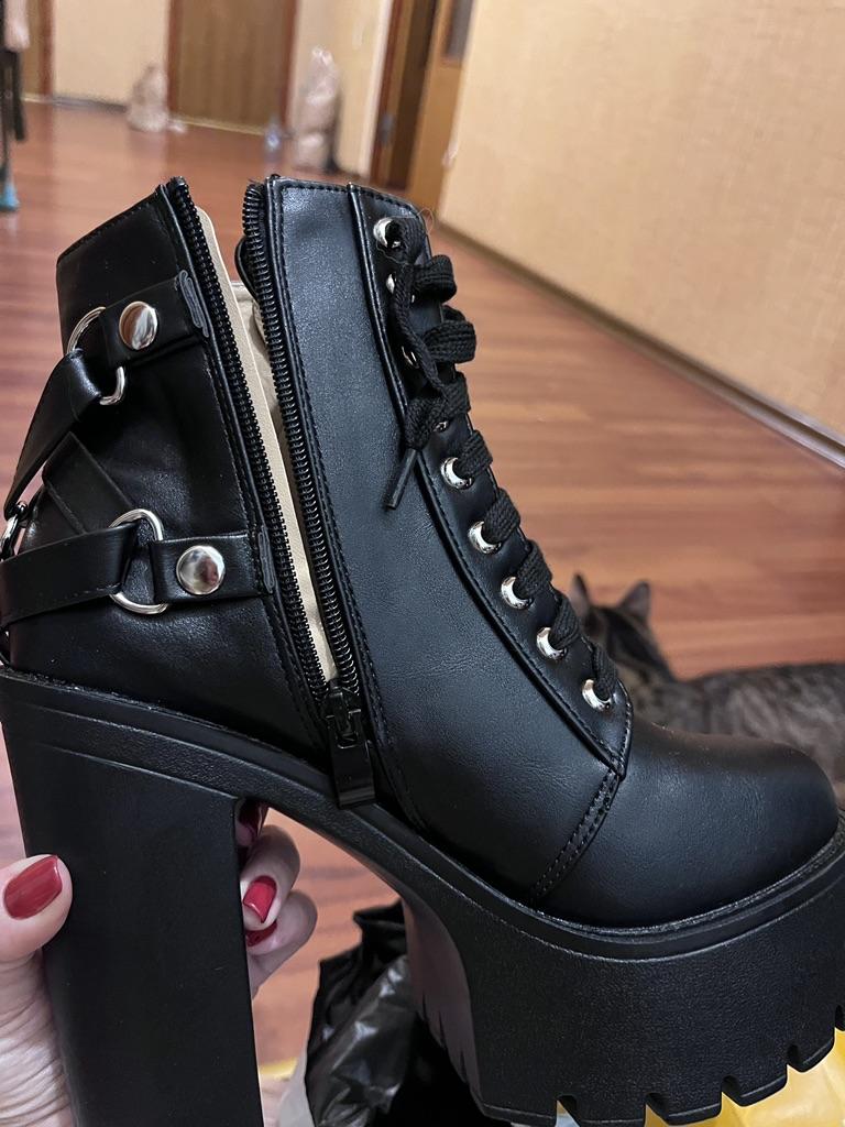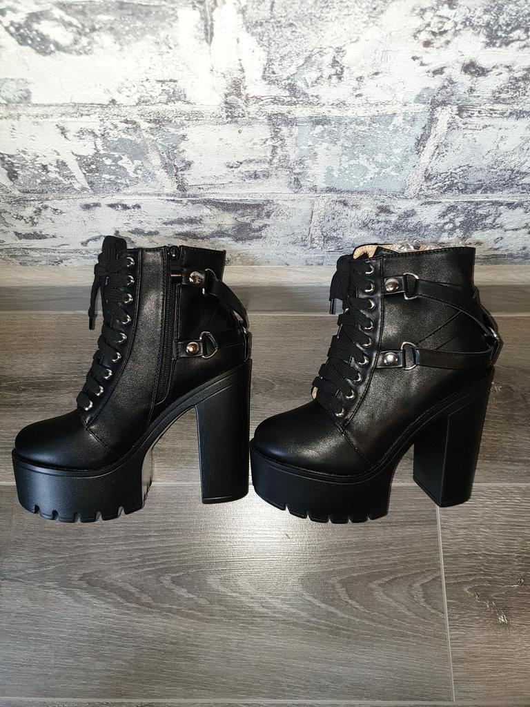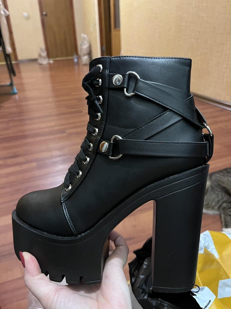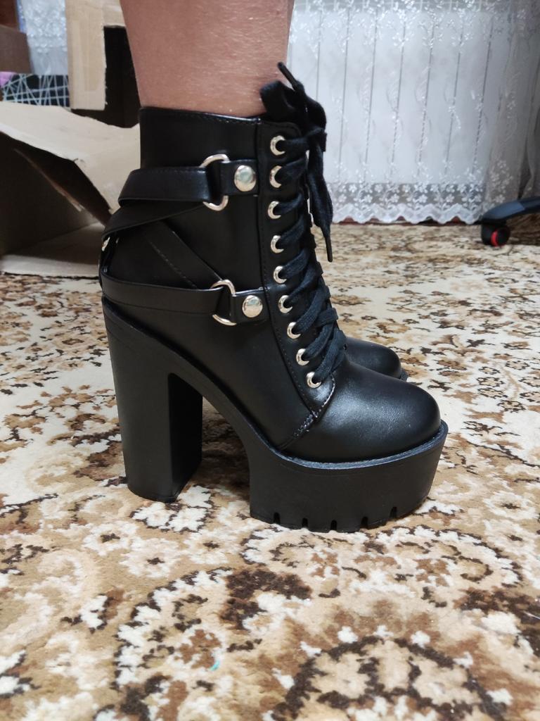 Fashion Black Boots Women Heel Spring Autumn Lace-up Soft Leather Platform Shoes Woman Ankle Boots