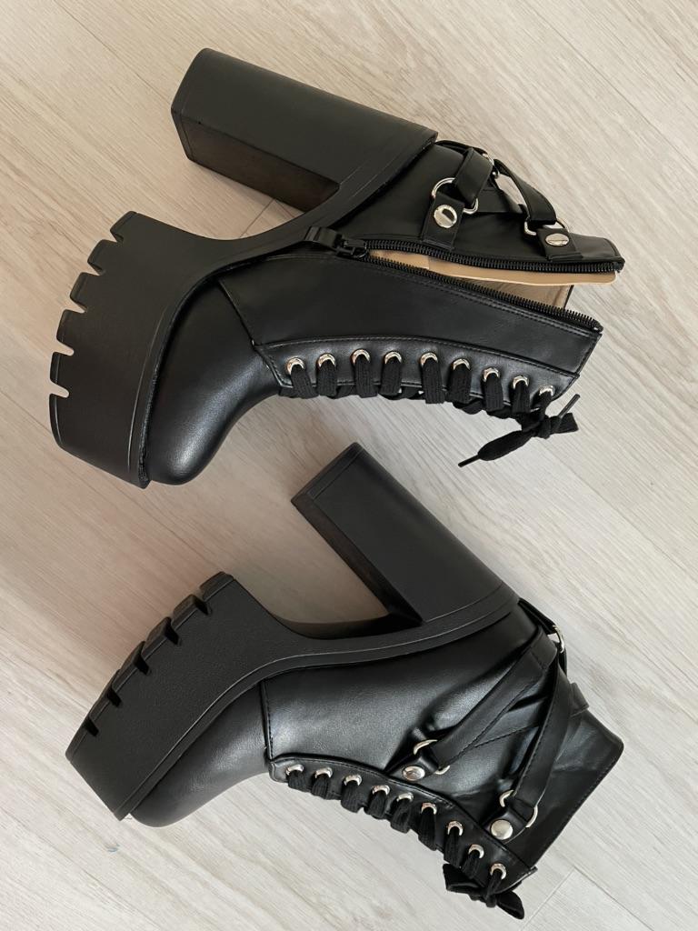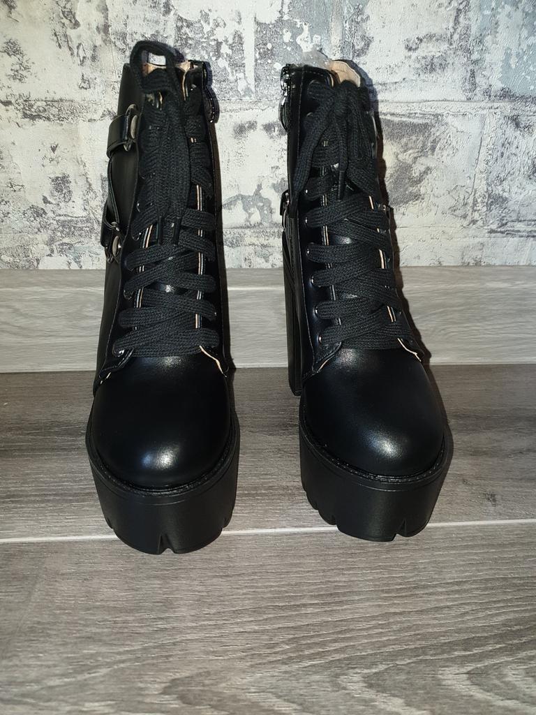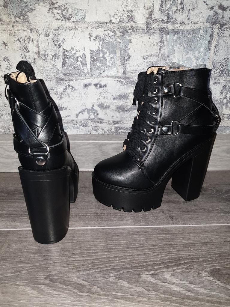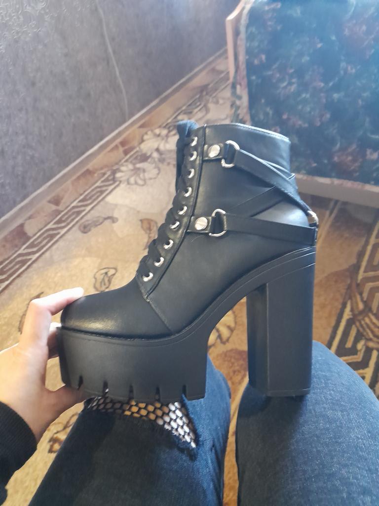 Fashion Black Boots Women Heel Spring Autumn Lace-up Soft Leather Platform Shoes Woman Ankle Boots