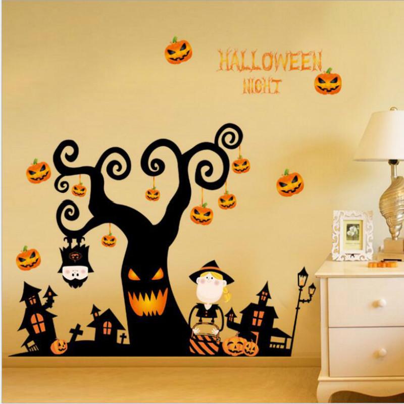 New Halloween Cartoon Pumpkin Light Bedroom Living Room Removable Holiday Wall Sticker Painting