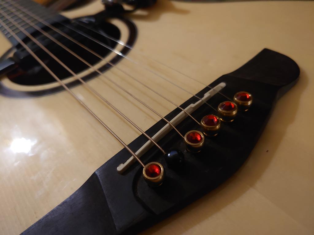 6pcs Pure Copper Brass Bridge Pins with Red Crystal Head Strings Nail Pegs Set for Acoustic Guitar