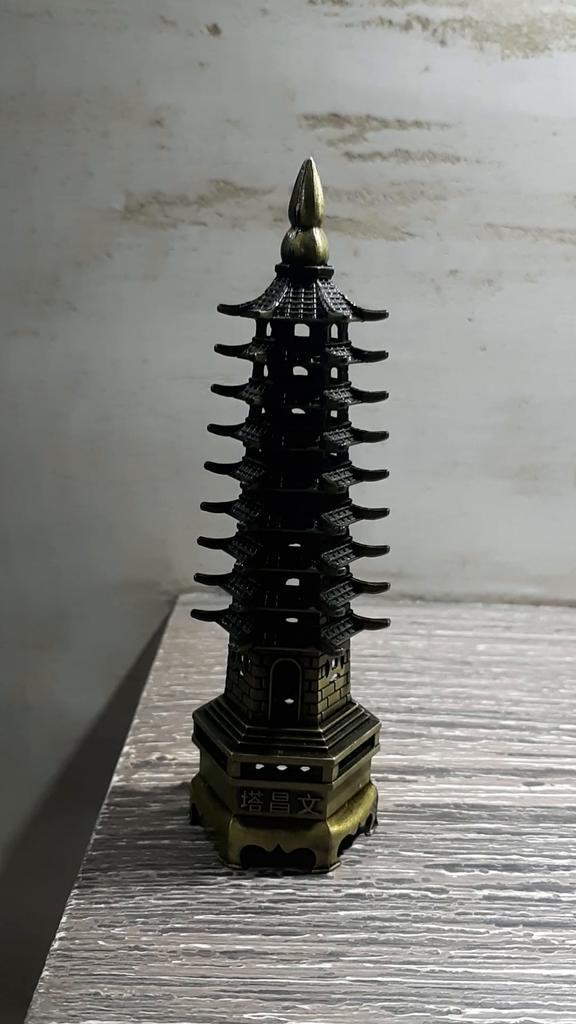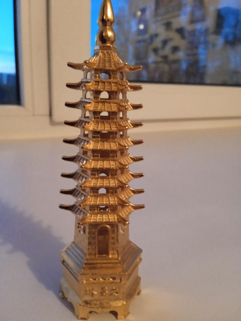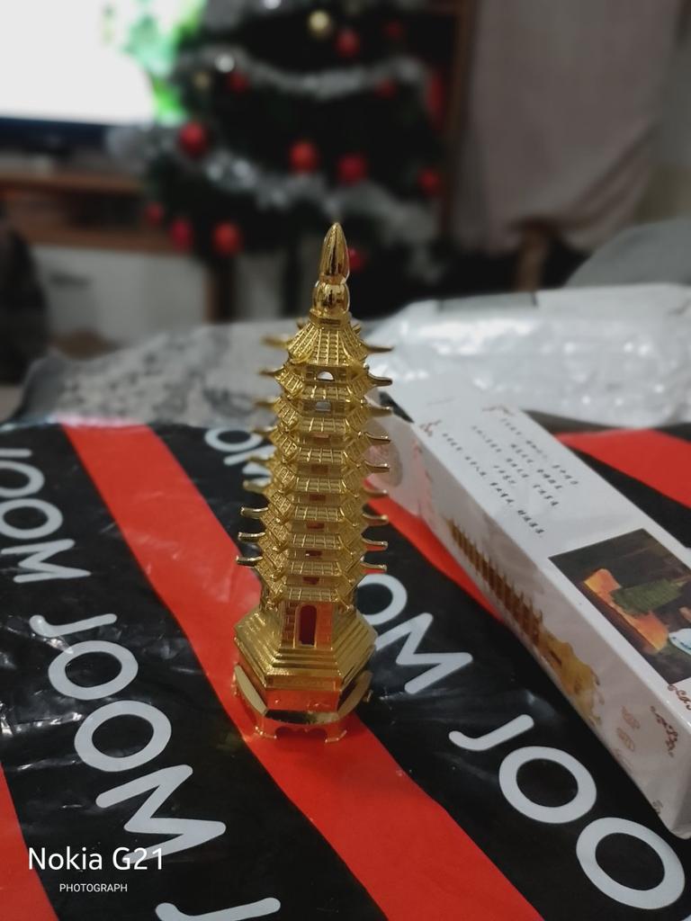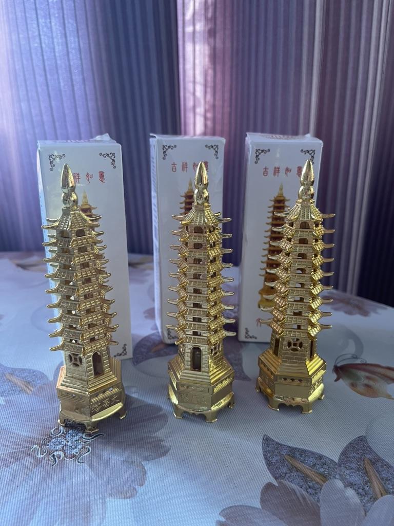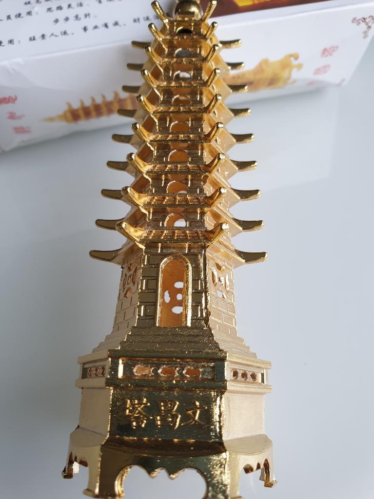 a 3D fengshui gold colour metal chinese tower which I think in China they call a pagoda