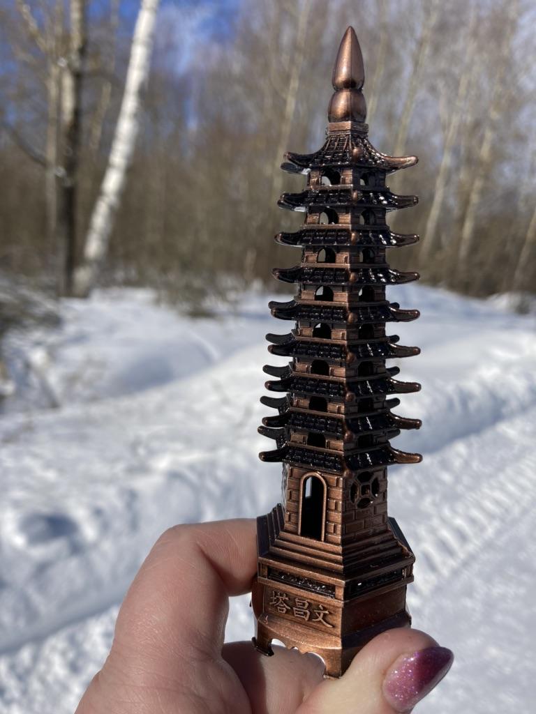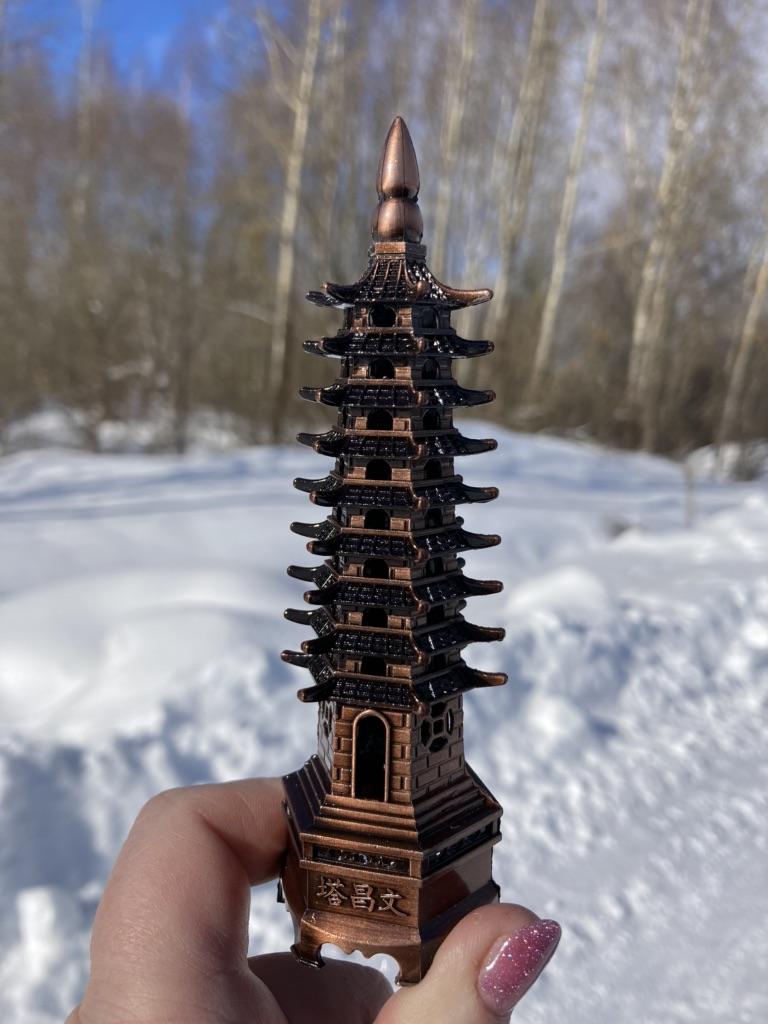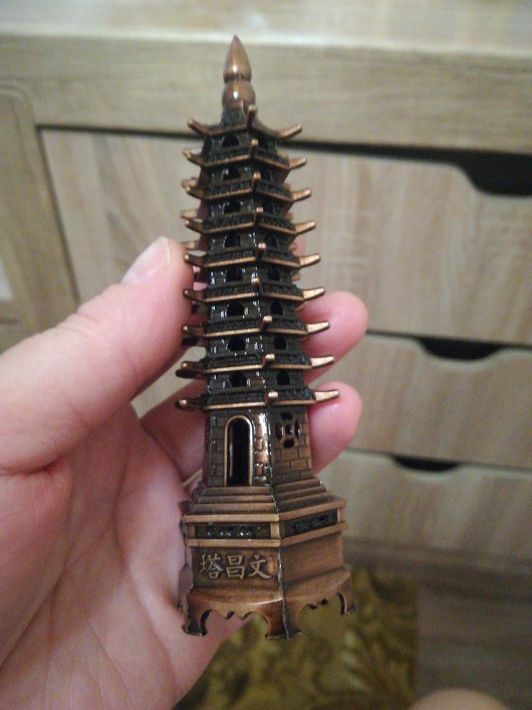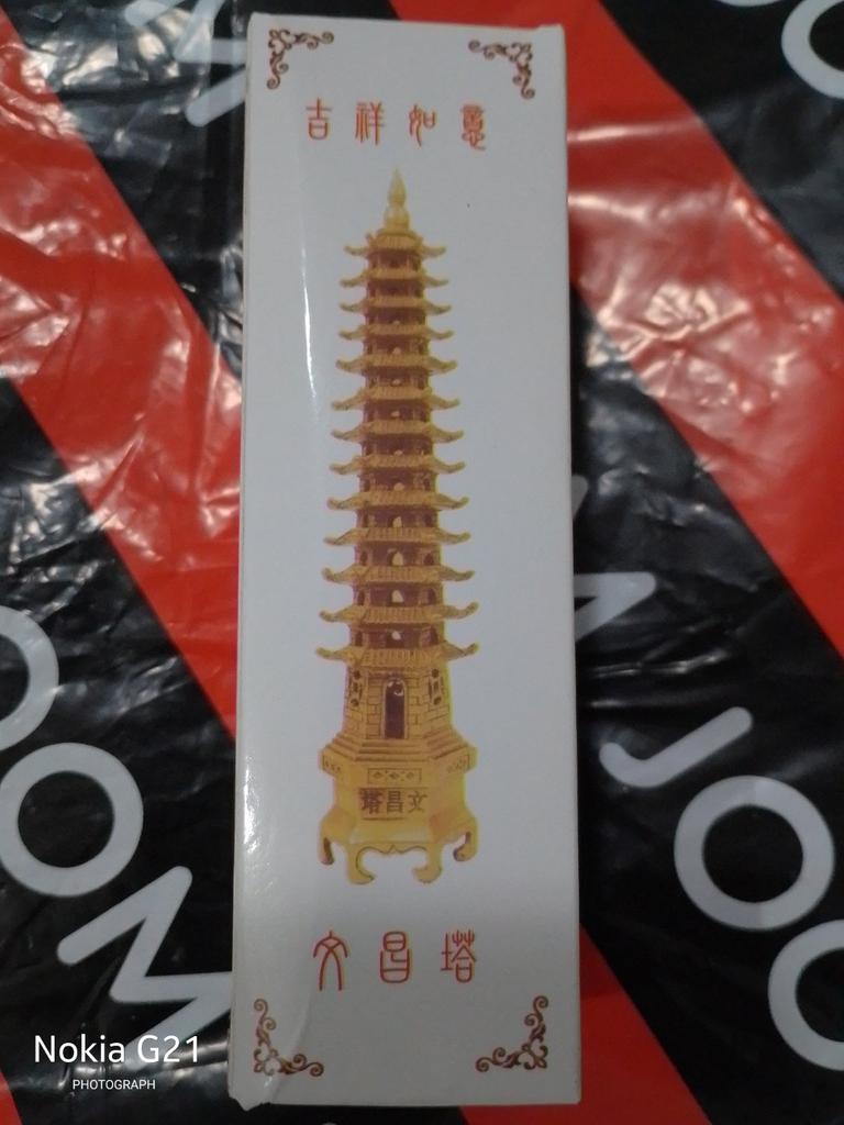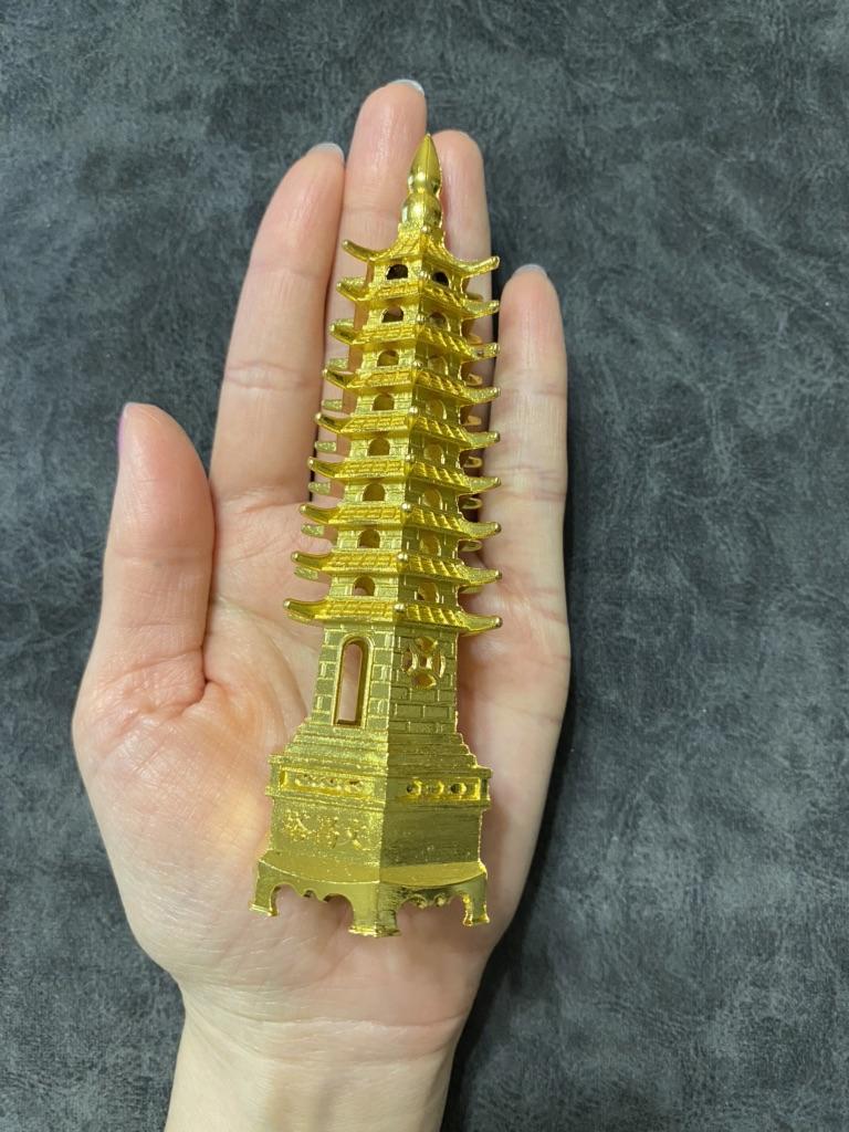 a 3D fengshui gold colour metal chinese tower which I think in China they call a pagoda