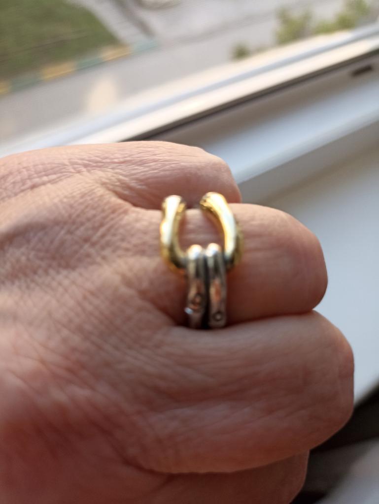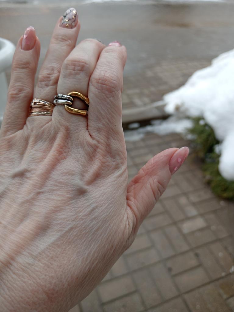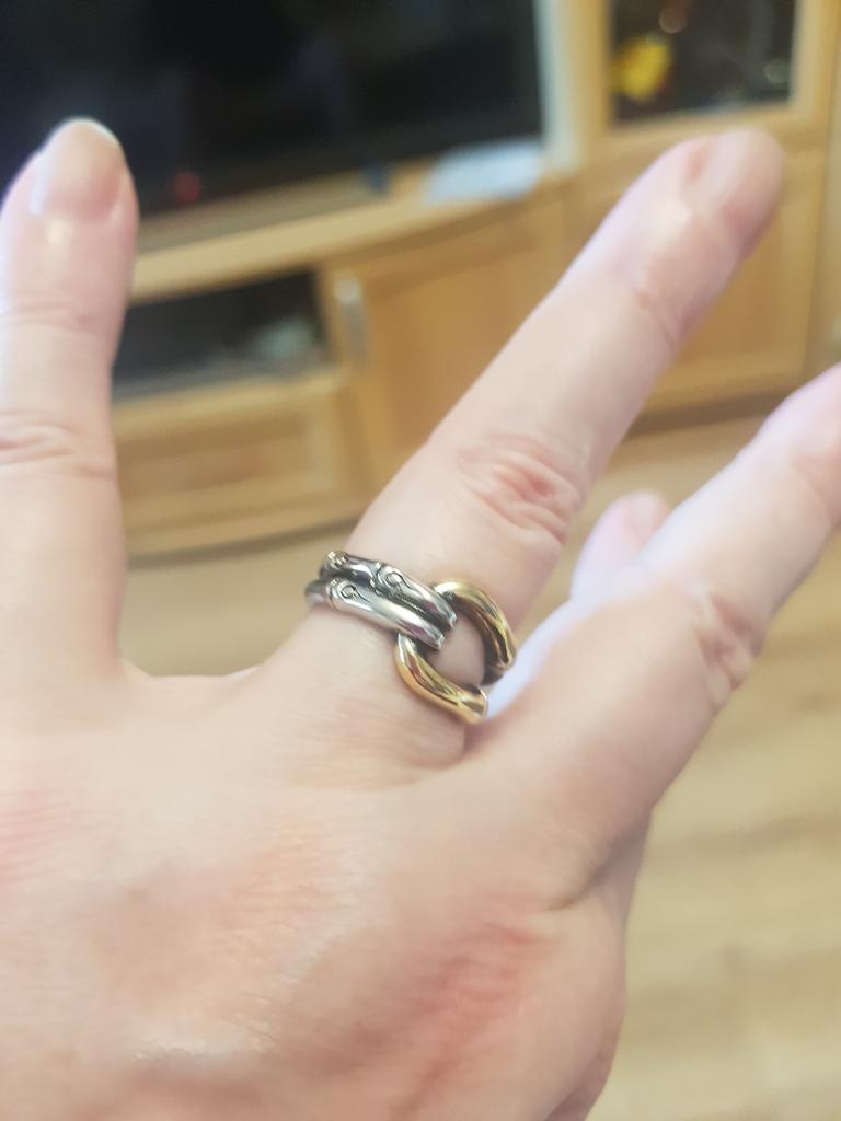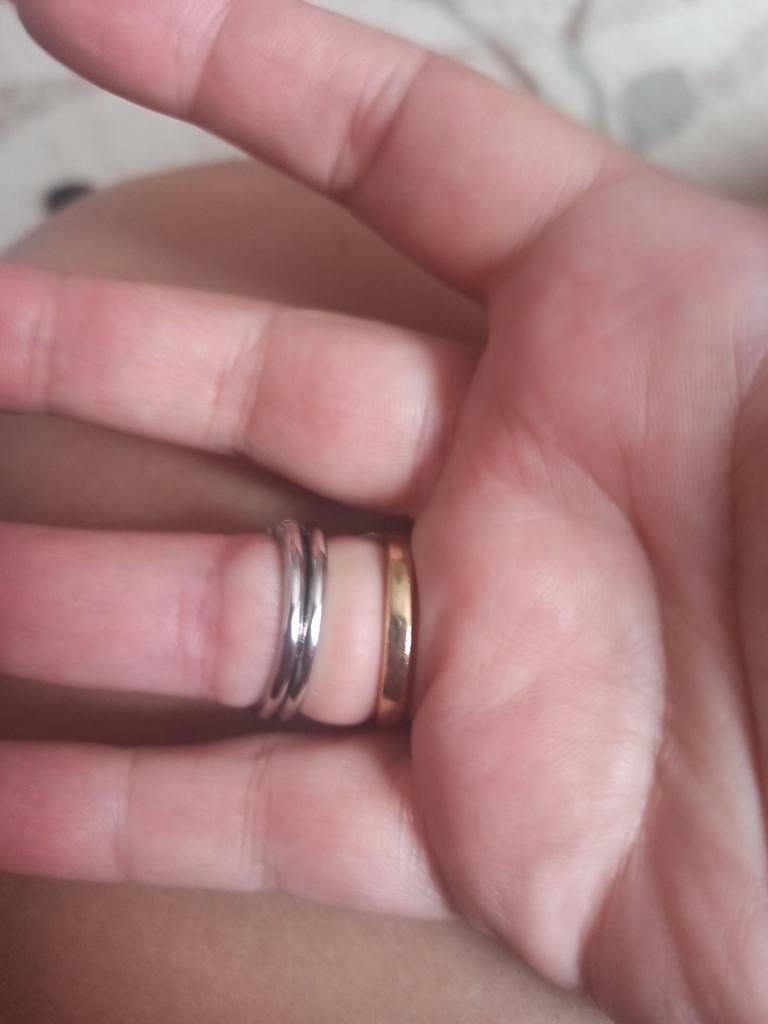 I like the ring. I received it on October 3rd and have not taken it off since then. It fits so perfectly on my finger that I forget about it. Only after a week, the gilding was worn off, but the silver part remained unchanged and the metal was all shiny. I took size 7 by 17.5