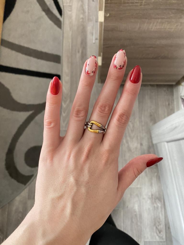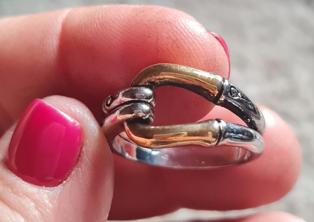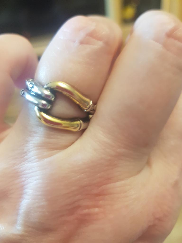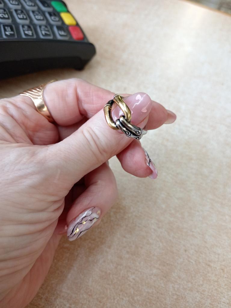 I like the ring. I received it on October 3rd and have not taken it off since then. It fits so perfectly on my finger that I forget about it. Only after a week, the gilding was worn off, but the silver part remained unchanged and the metal was all shiny. I took size 7 by 17.5