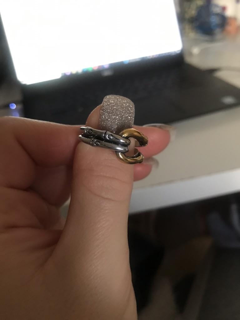 The ring looks stylish, original. The size fit.
