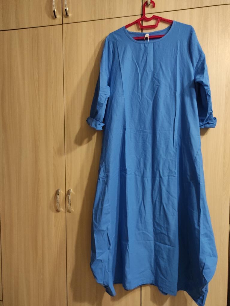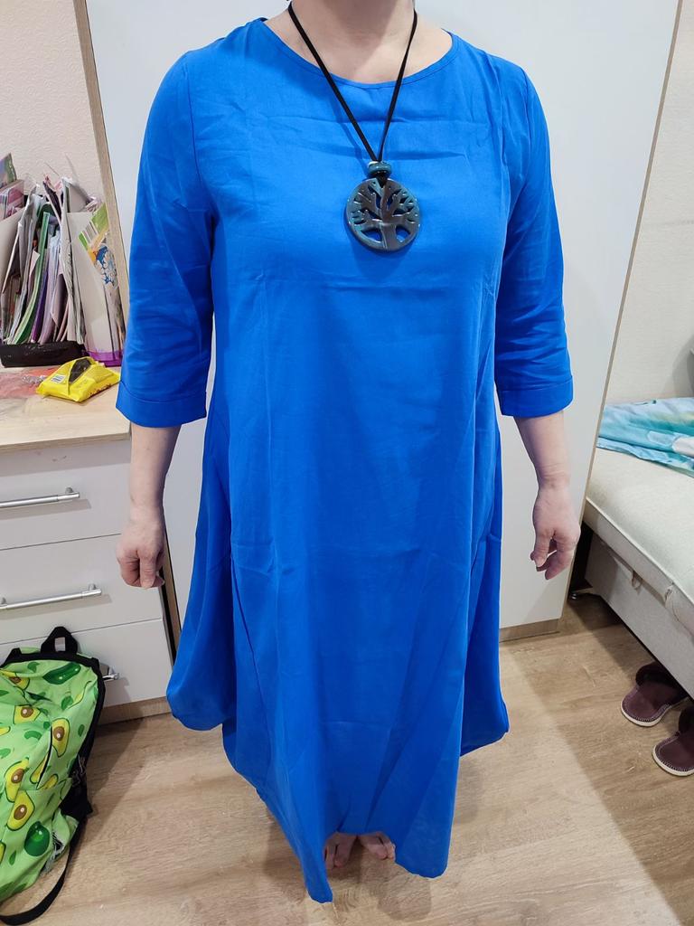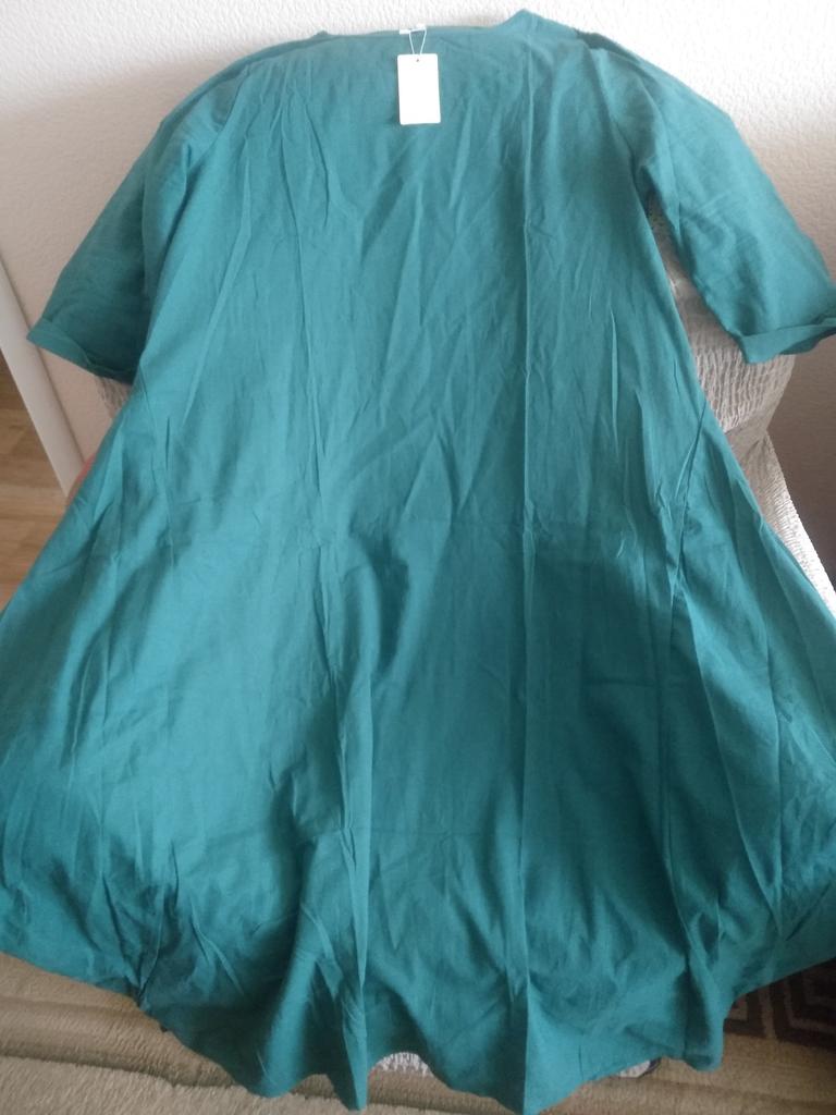 disadvantage: I had bought a dress like this a long time ago, it was from Zanzea, worked great with a sophisticated cut with wedges and diagonal seams in the back, which gives the dress an airy width and interesting folds on the side. THIS dress is NOT from Zanzea, but a plagiarism from Zei La La, but because the seller uses the same photos, I unfortunately didn't notice it and now have four of them on my cheek. Instead of a sophisticated cut and an interesting drape, the dress simply has two flat bumps left and right at the bottom. Due to the flat cut, it is one size smaller than the Zanzea model. It also has no hand pockets, although you can see them in the photos. Now I feel pretty charred.