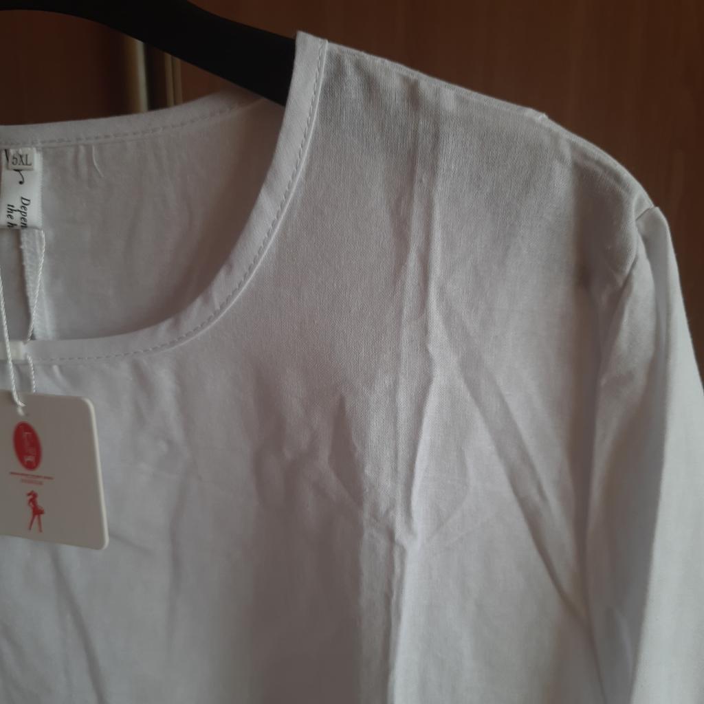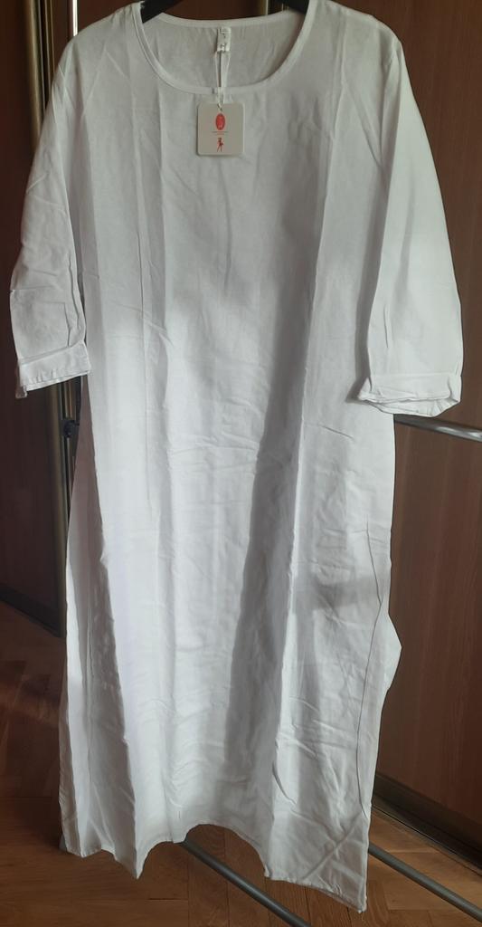 disadvantage: I had bought a dress like this a long time ago, it was from Zanzea, worked great with a sophisticated cut with wedges and diagonal seams in the back, which gives the dress an airy width and interesting folds on the side. THIS dress is NOT from Zanzea, but a plagiarism from Zei La La, but because the seller uses the same photos, I unfortunately didn't notice it and now have four of them on my cheek. Instead of a sophisticated cut and an interesting drape, the dress simply has two flat bumps left and right at the bottom. Due to the flat cut, it is one size smaller than the Zanzea model. It also has no hand pockets, although you can see them in the photos. This white dress may not even be cotton, the fabric feels pretty slippery, unlike the colorful dresses. Now I feel pretty charred.