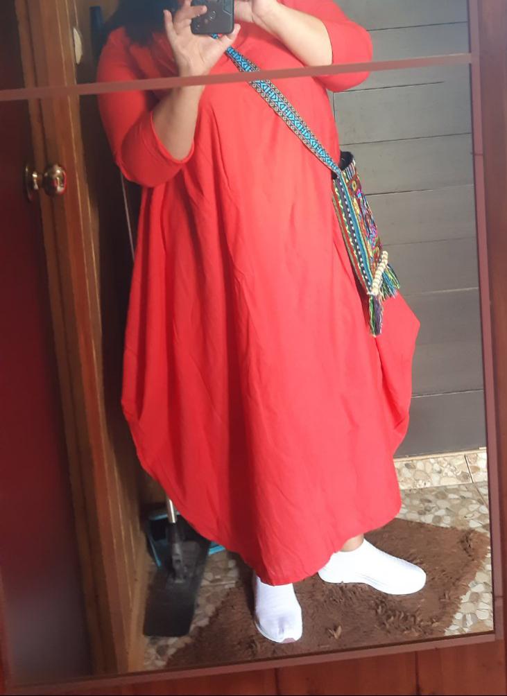 Very long delivery time. I ordered 4xl because this dress is worn loose, relying on the measurement table which should not be correct too tight at the hip level