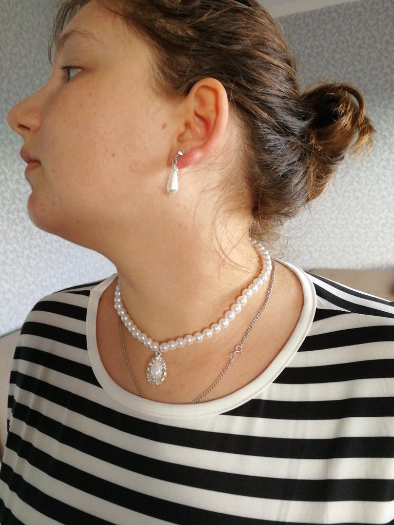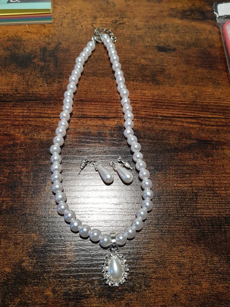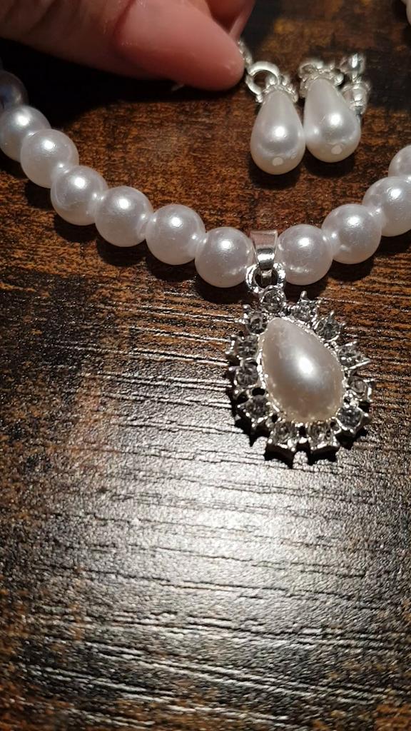 Water Drop Shape Pendant Beaded Necklace Earrings Bridal Jewelry Set